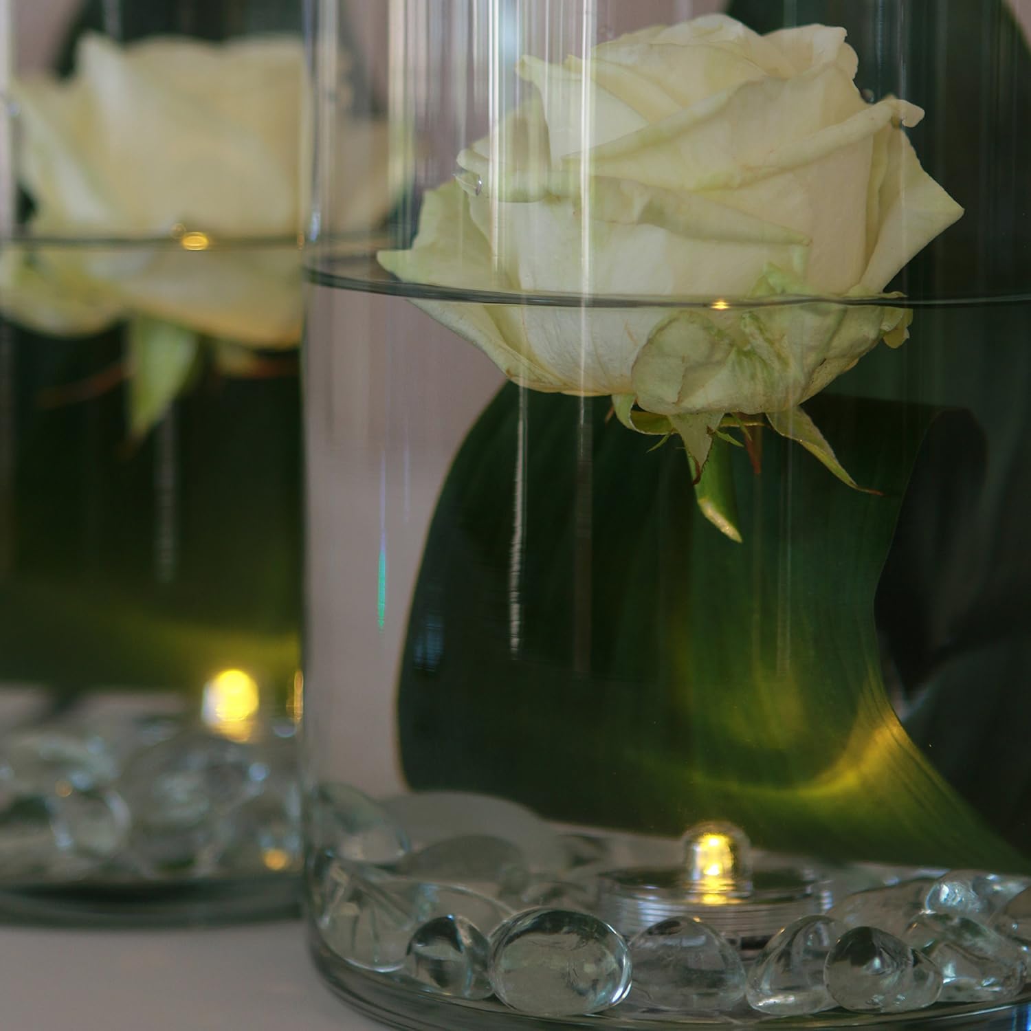 • 【VERSATILE LED TEA LIGHTS】: Small LED lights(1.13" diameter, 1" tall) fit and work for small or large vases in the weddings reception, parties,high-end events centerpieces and flower arrangments.