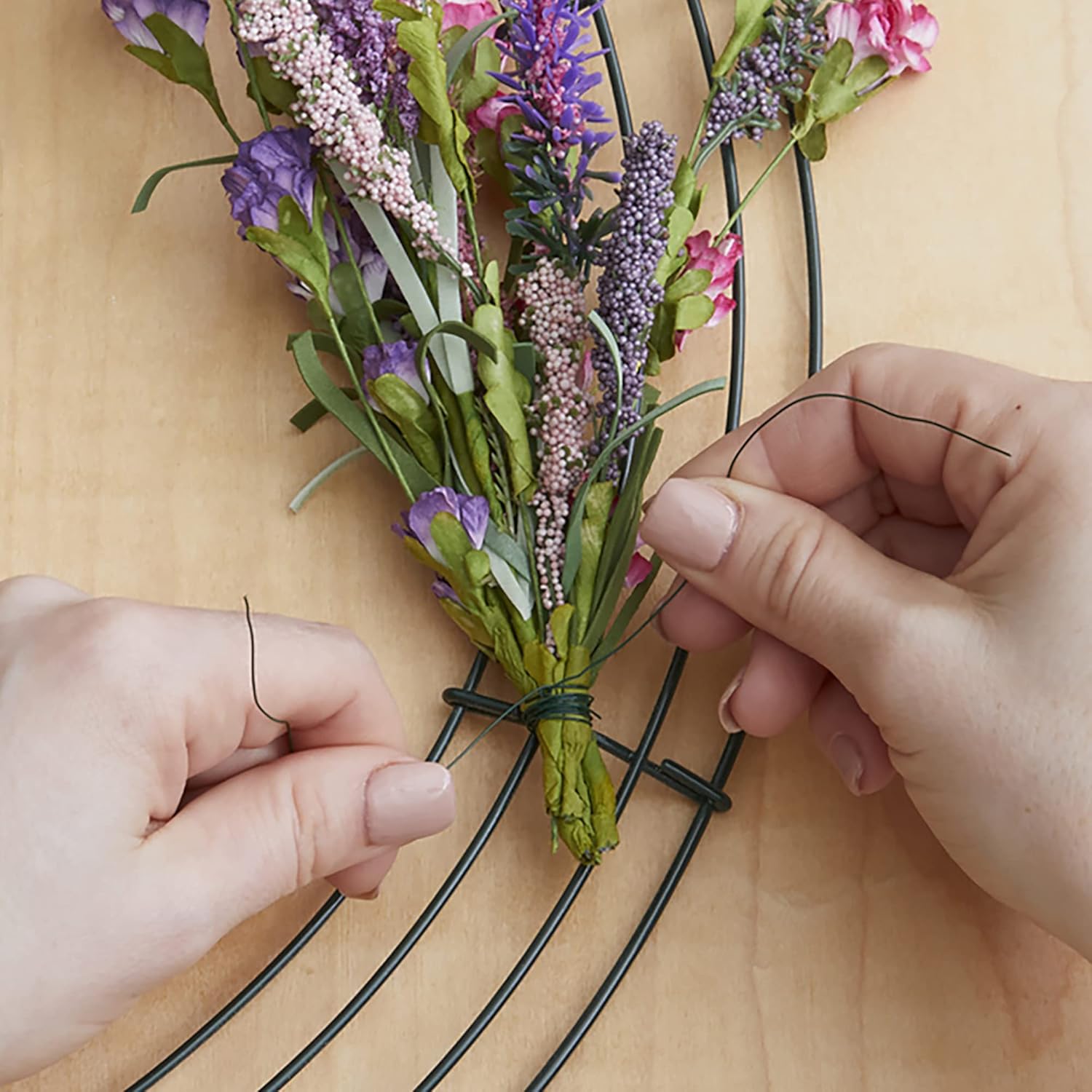 • Use wire to tie floral stems together, strengthen and reinforce delicate or weak stems, or attach stems to wreath forms, floral crowns and garlands.