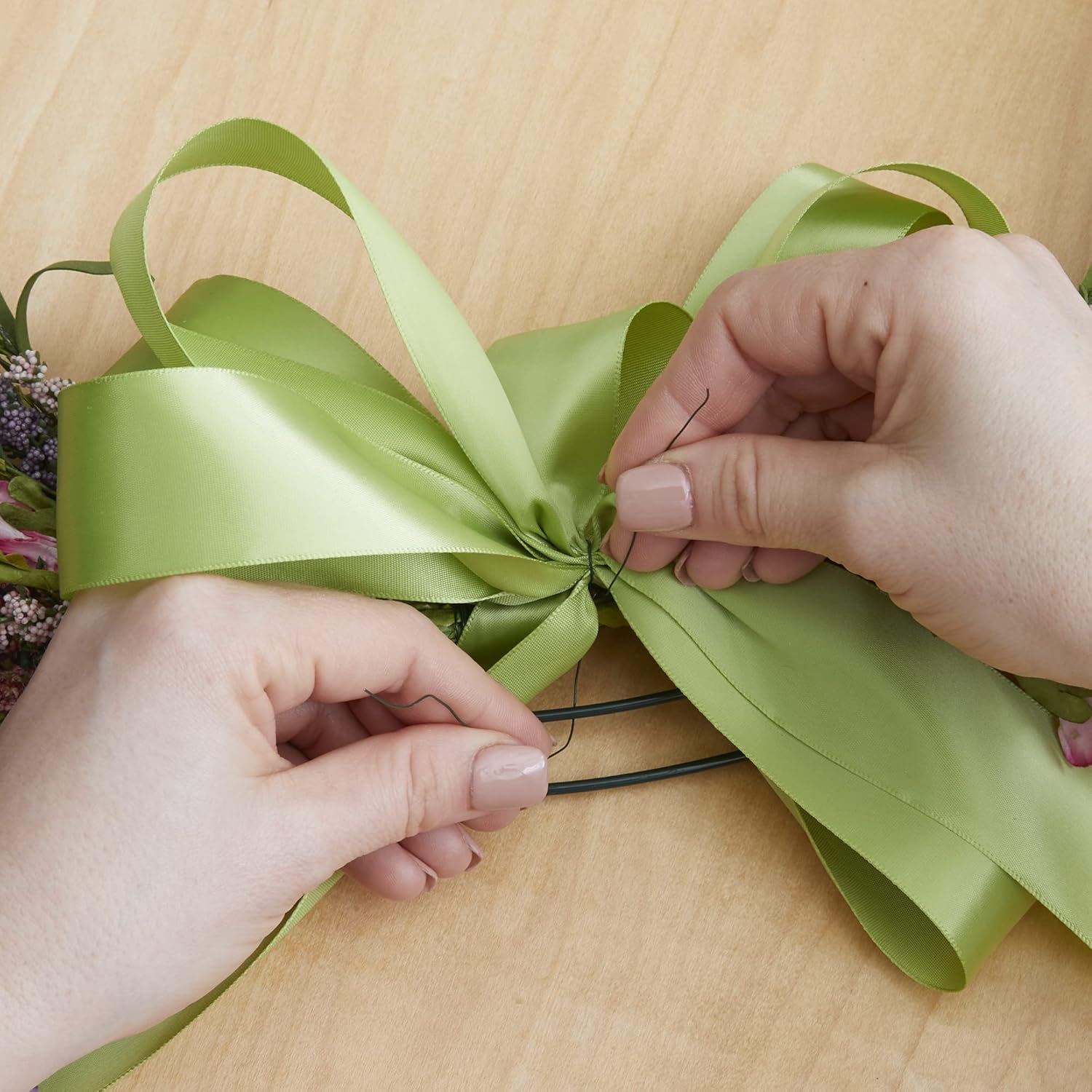 • Use wire to tie floral stems together, strengthen and reinforce delicate or weak stems, or attach stems to wreath forms, floral crowns and garlands.