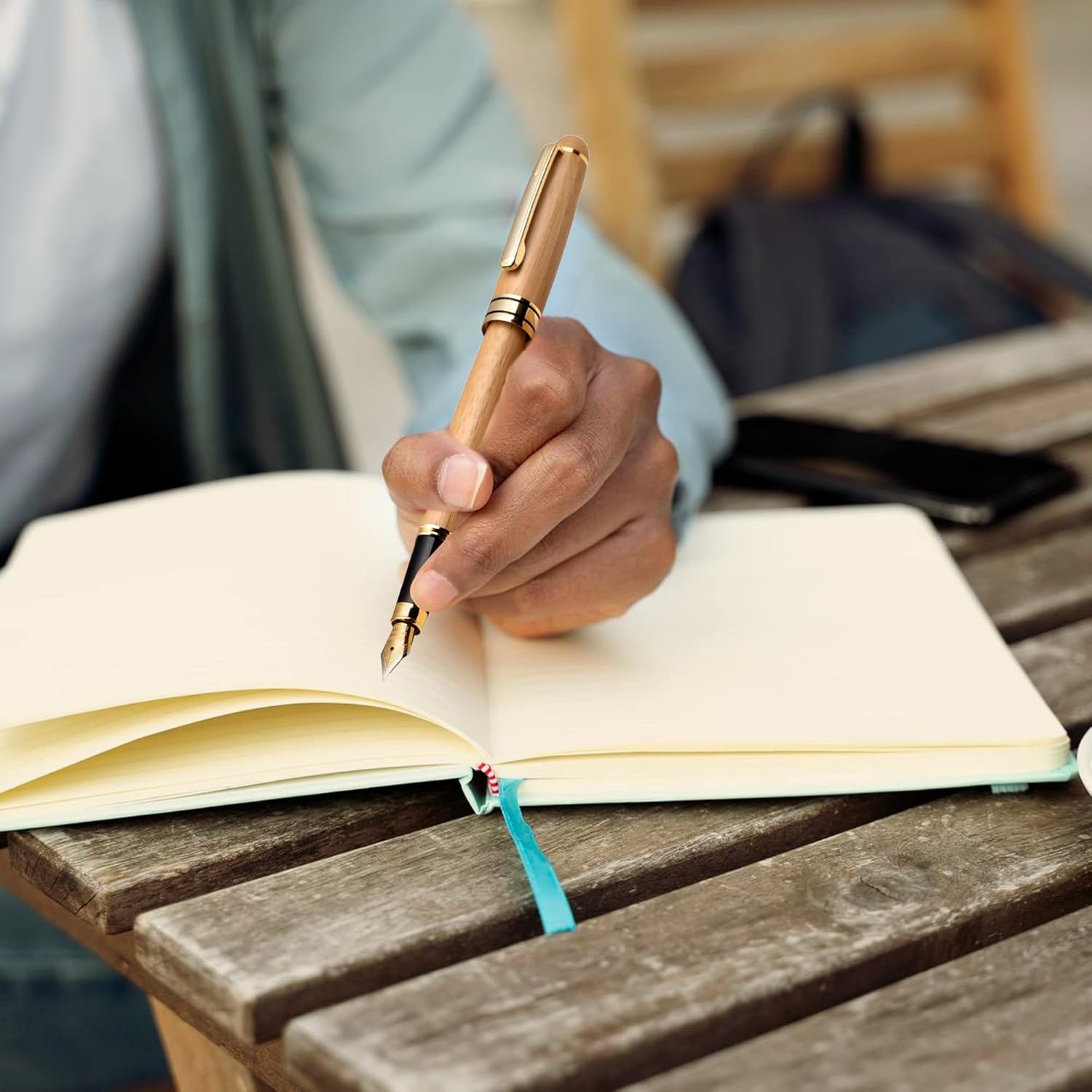 ZenZoi Wood Pen Set - Bamboo Fountain Pen w/Fine Nib & Rollerball Pen. Smooth Writing, Refillable, Vintage, Crafted, Journaling Pen. Luxury Pen Gift Set for Men, Women, Ink Converter.