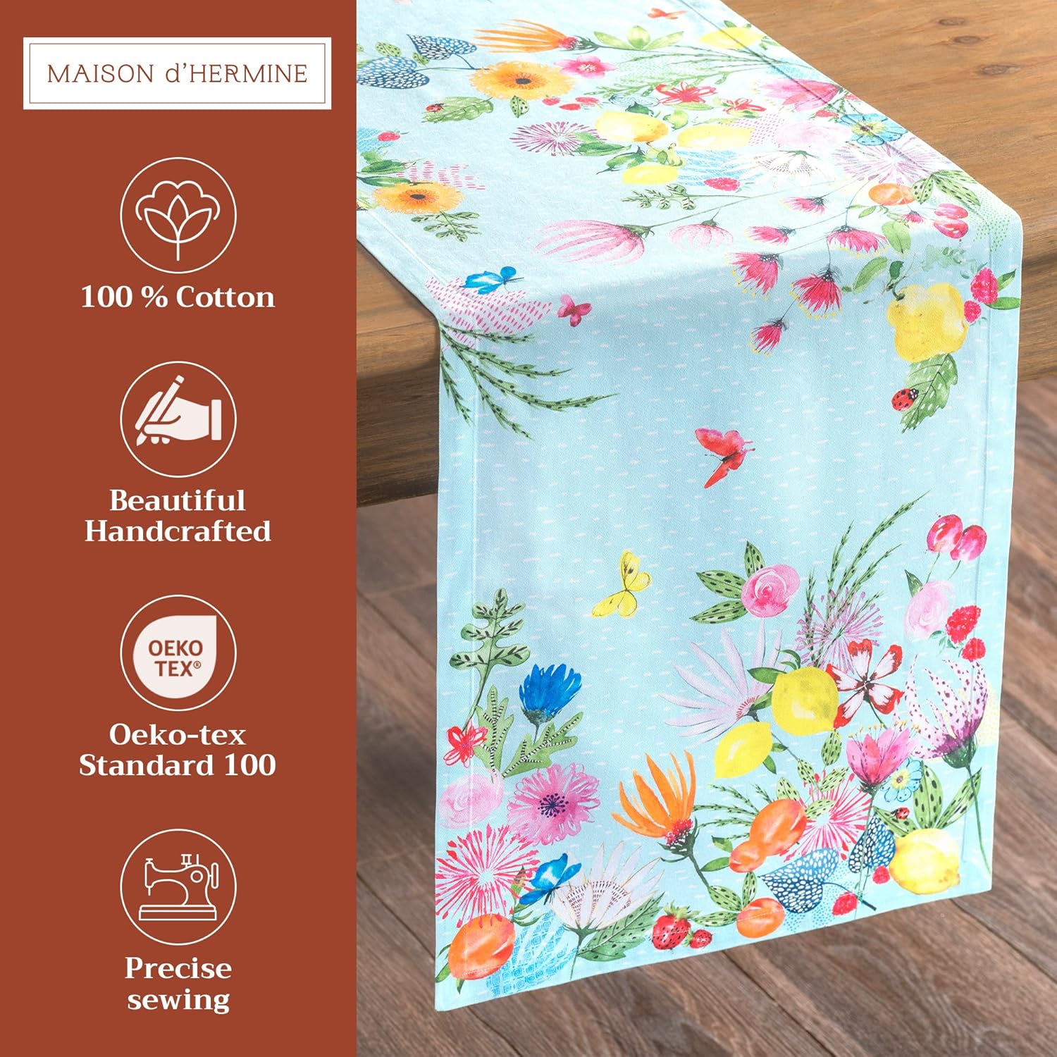 Maison d' Hermine Table Runner 100% Cotton Single Layer Table Runners 72 inches Long Decorative for Home Kitchen Dining Party Wedding Bridal Shower Spring Summer (Jardin D'Ete - Mint, 14.50" x 72")