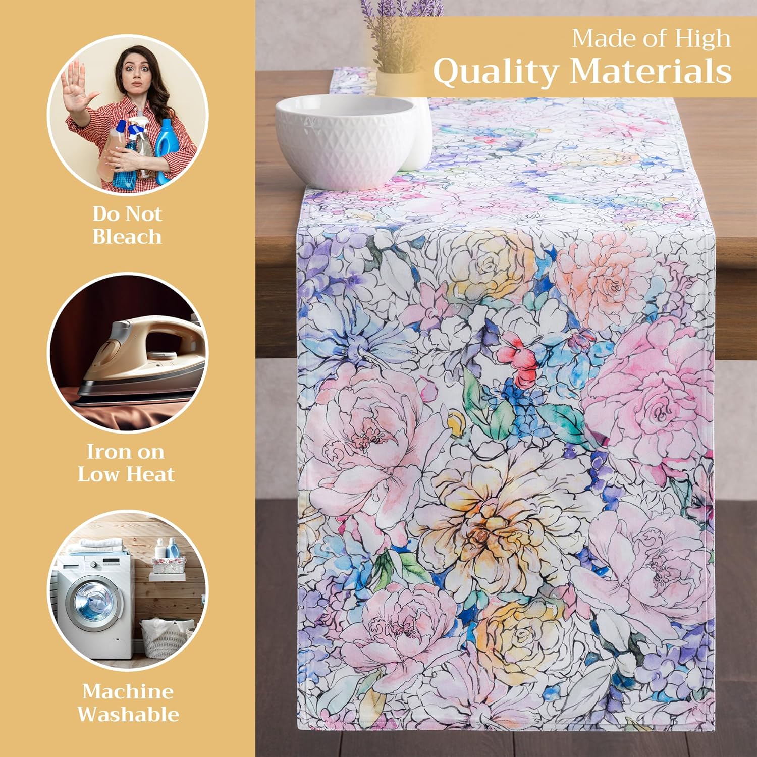 • Easy care & maintenance: Crafted from 100% cotton, this table runner is machine washable with like colors, do not bleach. Tumble dry on low and warm iron if needed. Durable and easy to maintain for everyday or seasonal use.