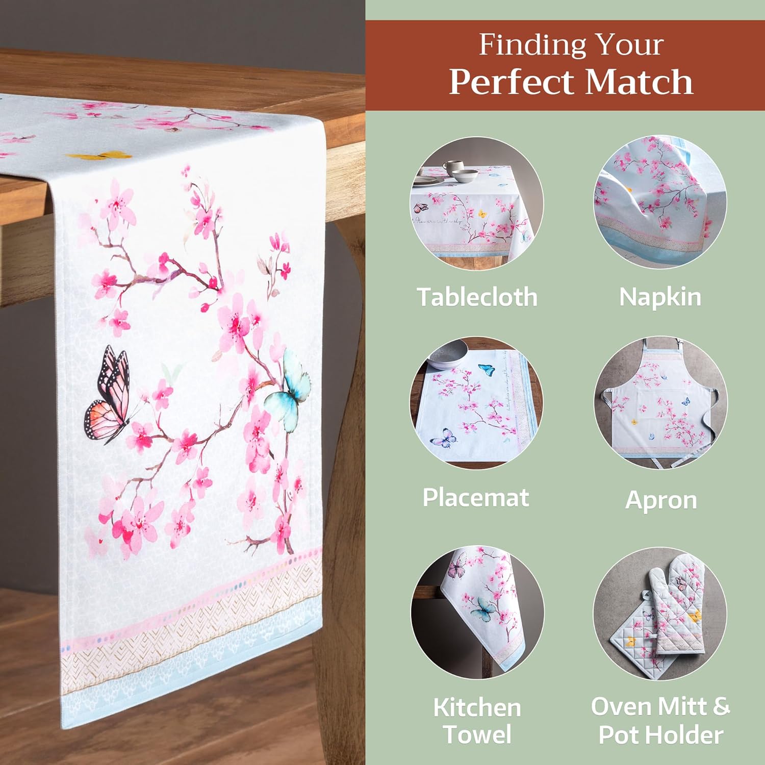 Maison d' Hermine Table Runner 100% Cotton Double Layer Table Runners 108 inches Long Decorative for Home Kitchen Dining Party Wedding Bridal Shower Spring Summer (Blossoms in Spring, 14.50" x 108")