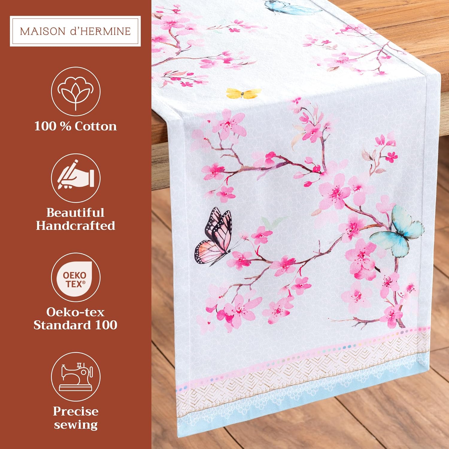 Maison d' Hermine Table Runner 100% Cotton Single Layer Table Runners 108 inches Long Decorative for Home Kitchen Dining Party Wedding Bridal Shower Spring Summer (Blossoms in Spring, 14.50" x 108")
