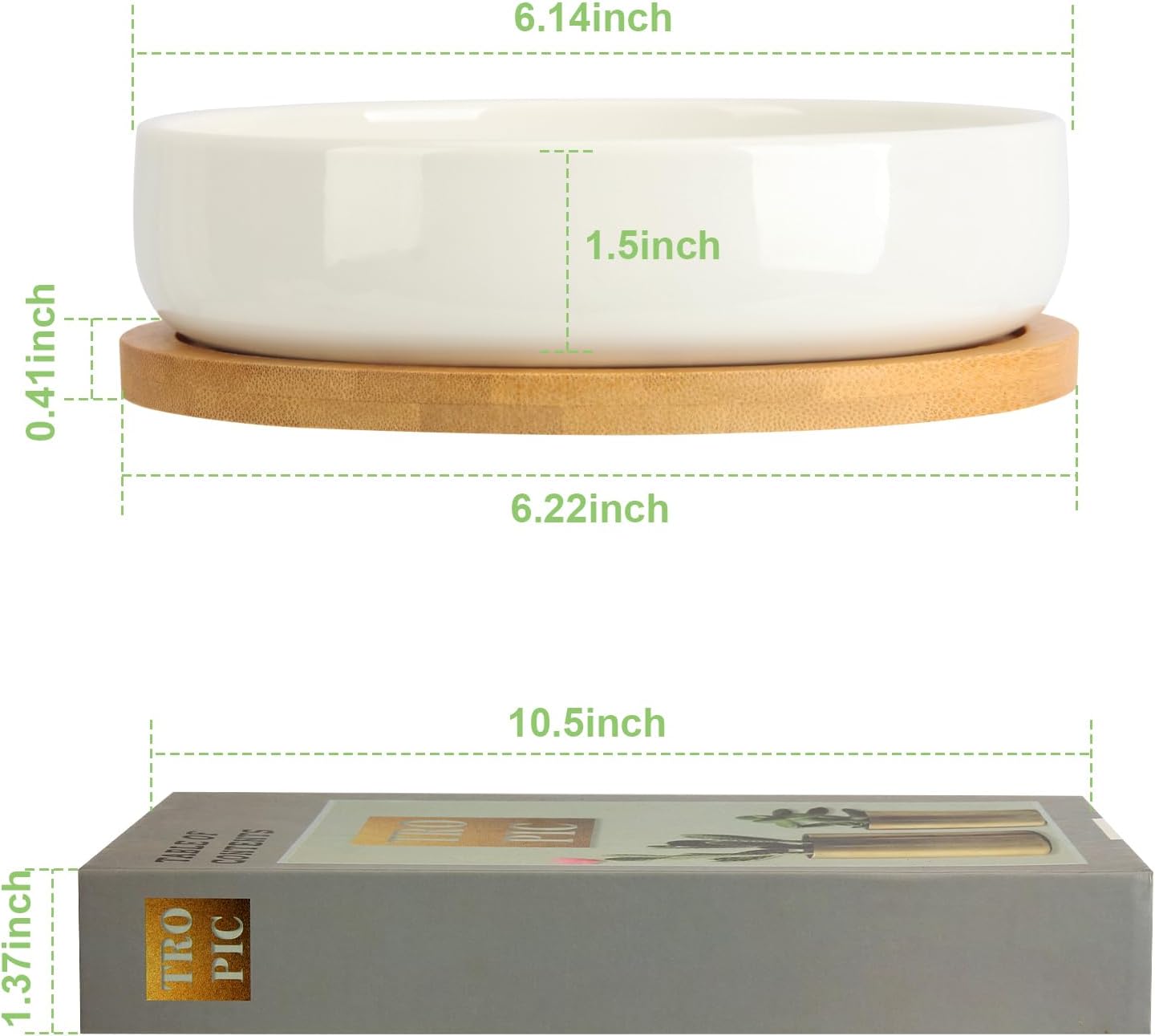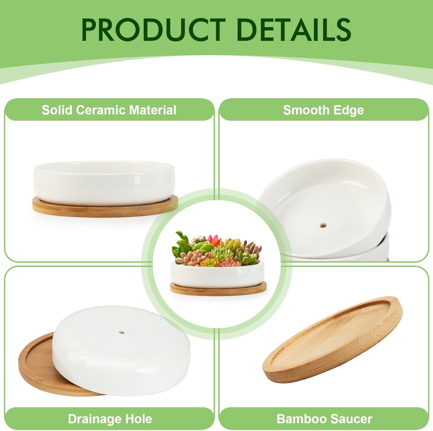 • Succulent Pots Great Value:2-pack shallow succulent pots with drainage and bamboo tray are ideal for small greenery,succulents,cactus,herbs,or flowers.A great way to bring a touch of nature to your indoor spaces.(Plants not included)
