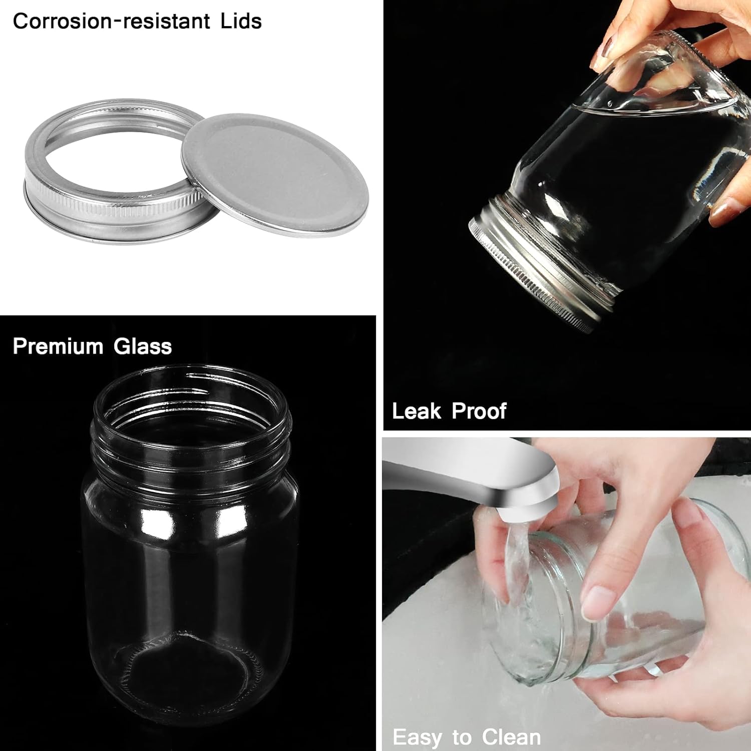 • Package include: 20 Pack 12oz/360ml mason jars with silver split-type screw metal lids; Size: 2.9inch(Base Width) x 4.7 inch(Height) x 2.75 inch(Regular mouth)