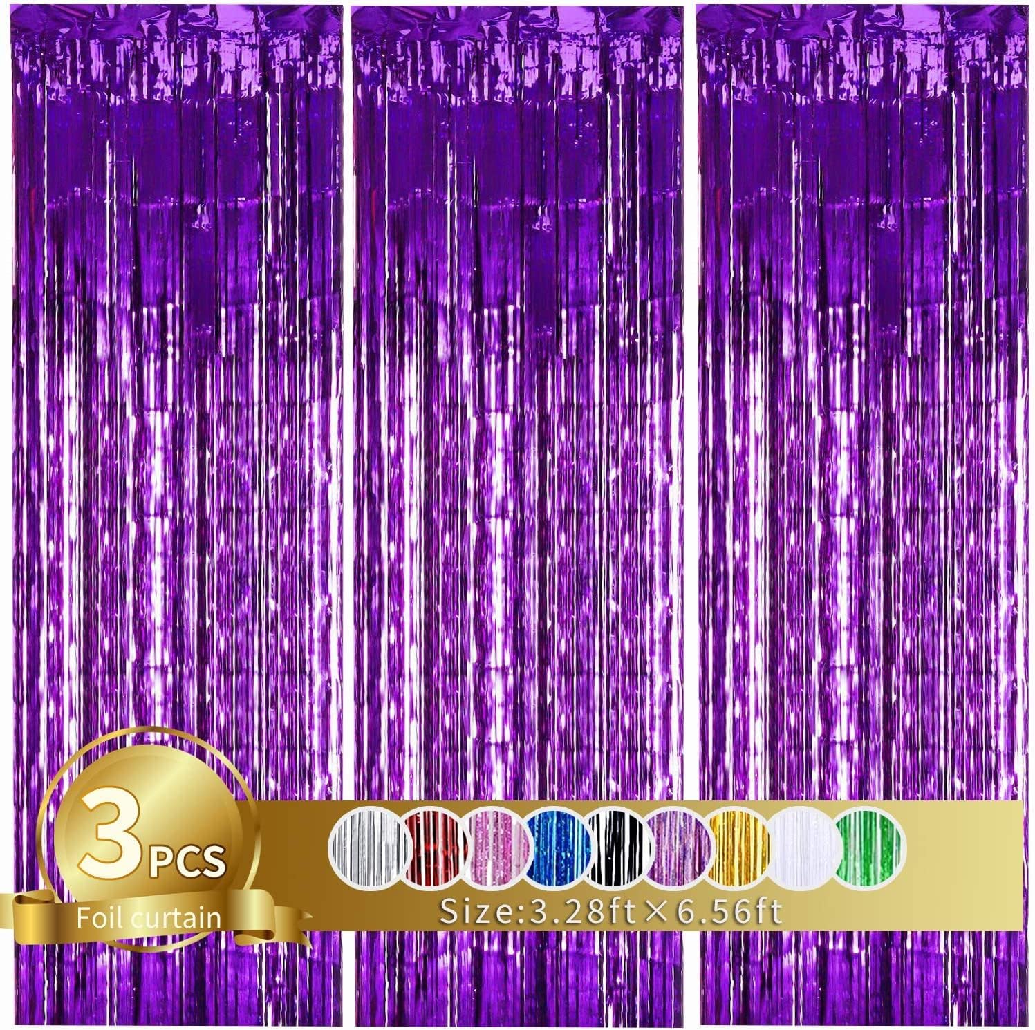 TONIFUL 3Pcs Purple Door Streamers,Purple Photo Booth Backdrop,Metallic Streamers Foil Fringe Curtains for Halloween Birthday,Christmas,New Year,St. Patrick's Day Party Decor(9.9ft x 6.6ft)