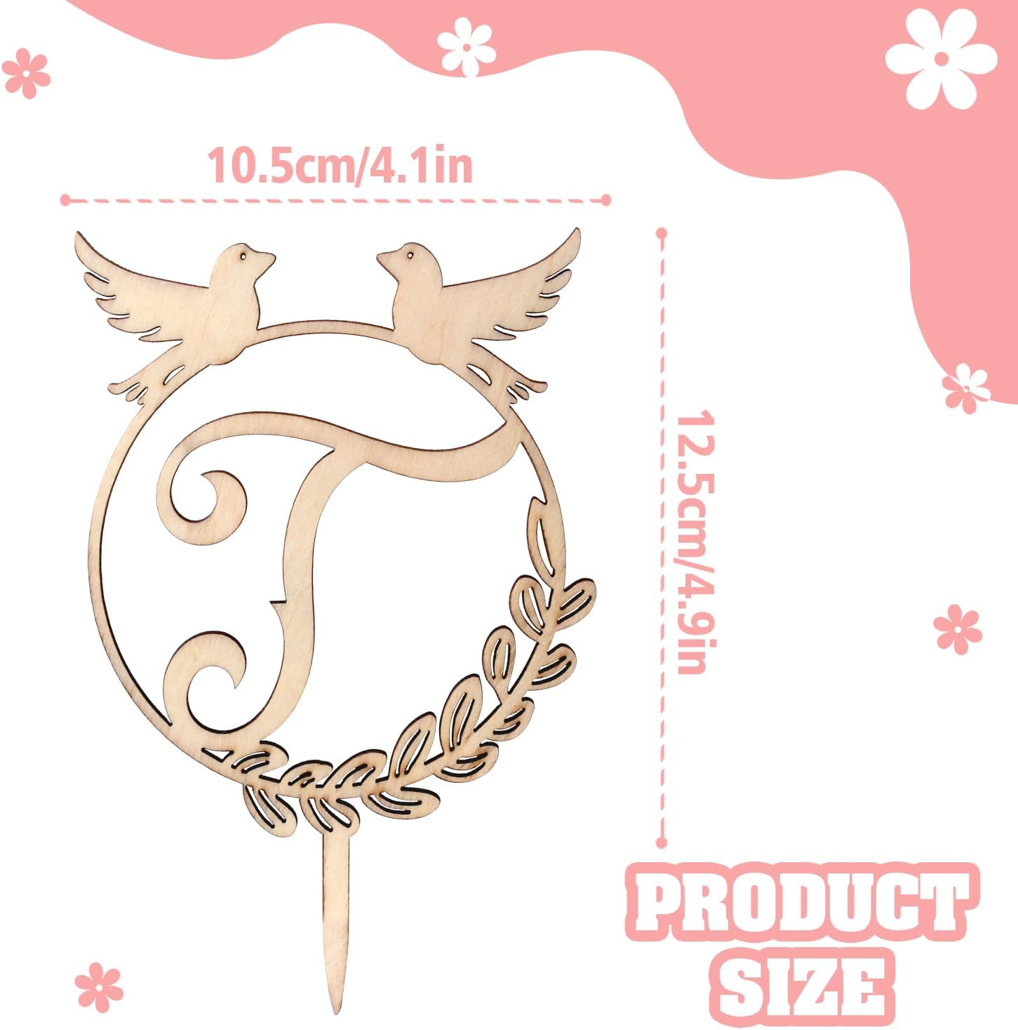 LINGTEER Personalized Inital Letter T Wood Cake Topper Perfect for Birthday Rustic Wedding Anniversary Party Keepsake Decoration