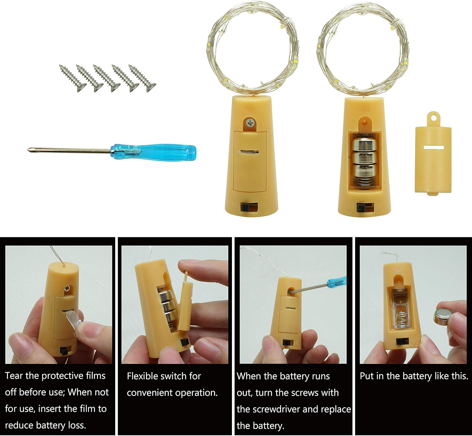 • ♔Easy to Use: Each bottle cork light is powered by 3PCS LR44 batteries (battery installed). Just turn the switch on and put the bottle cork light into the bottle mouth, then they will work simply without connecting the power supply.