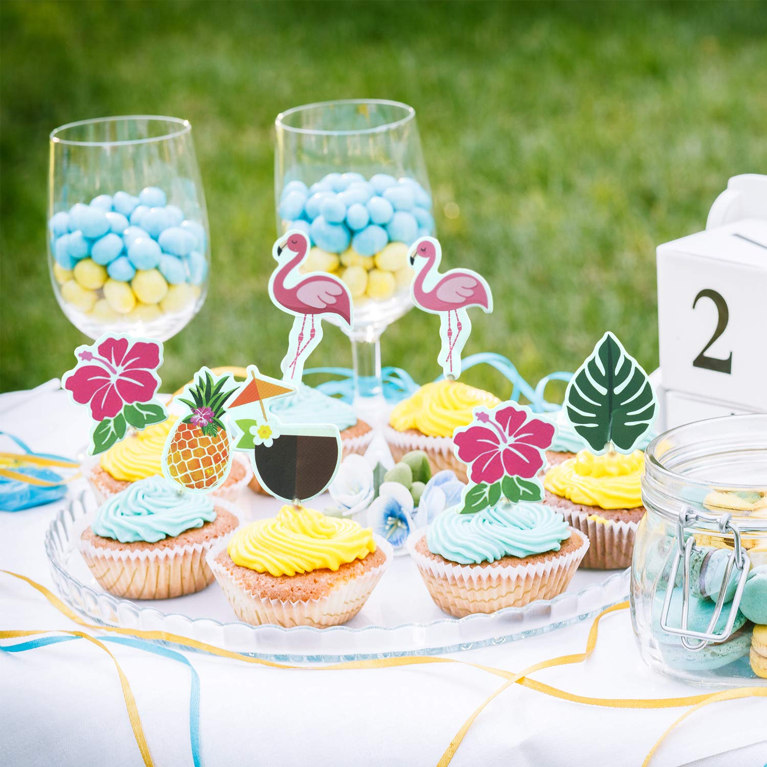 Luau Cupcake Toppers Tropical Cake Decorations Hawaiian Toothpicks Sticks with Flamingo Pineapple Palm Leaves Shape Picks for Summer Beach Theme Party Favors Supplies, 6 Styles (72)
