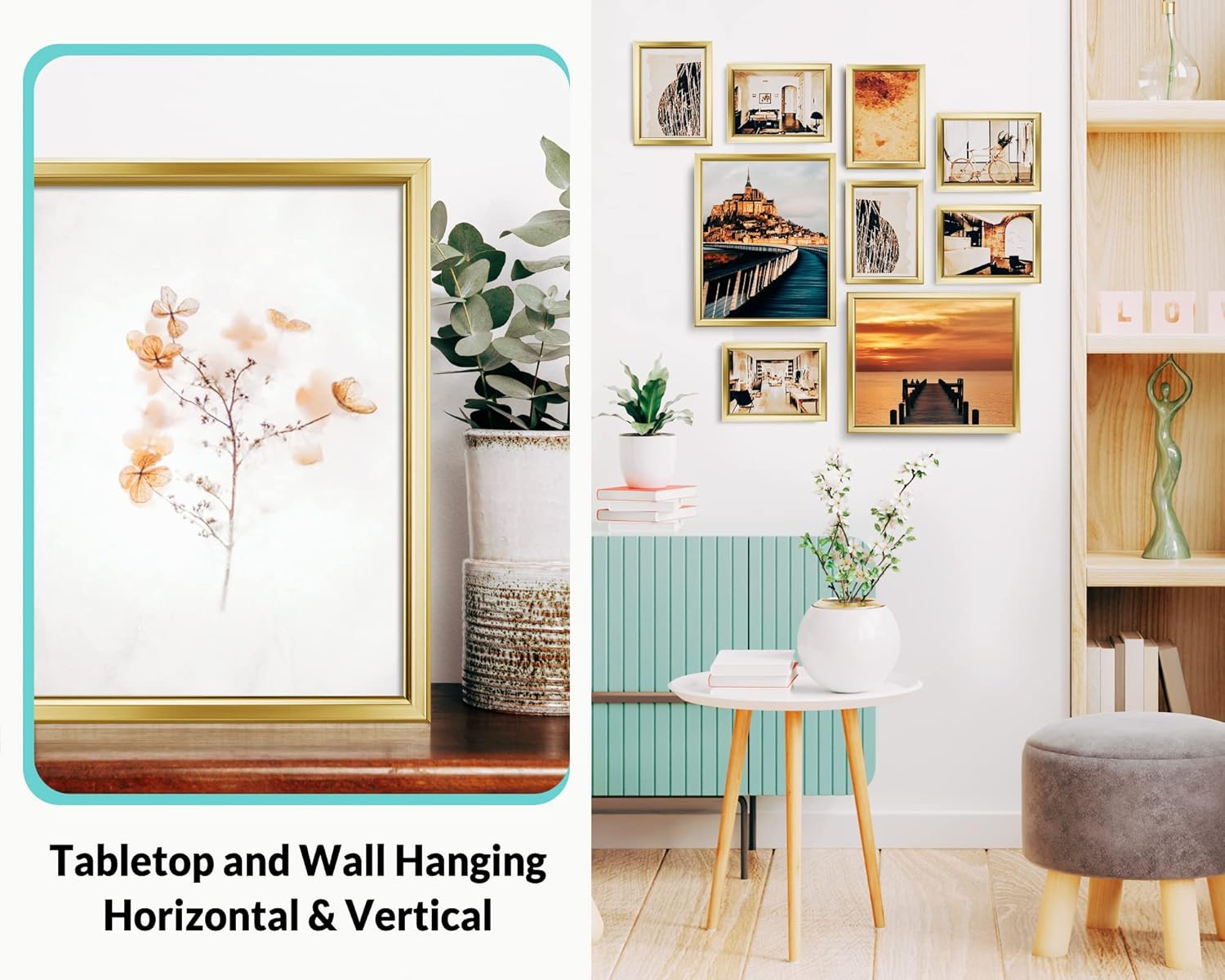 LaVie Home 8x10 Picture Frames (12 Pack, Gold) Simple Designed Photo Frames for Wall Mount Display, Set of 12 Classic Collection