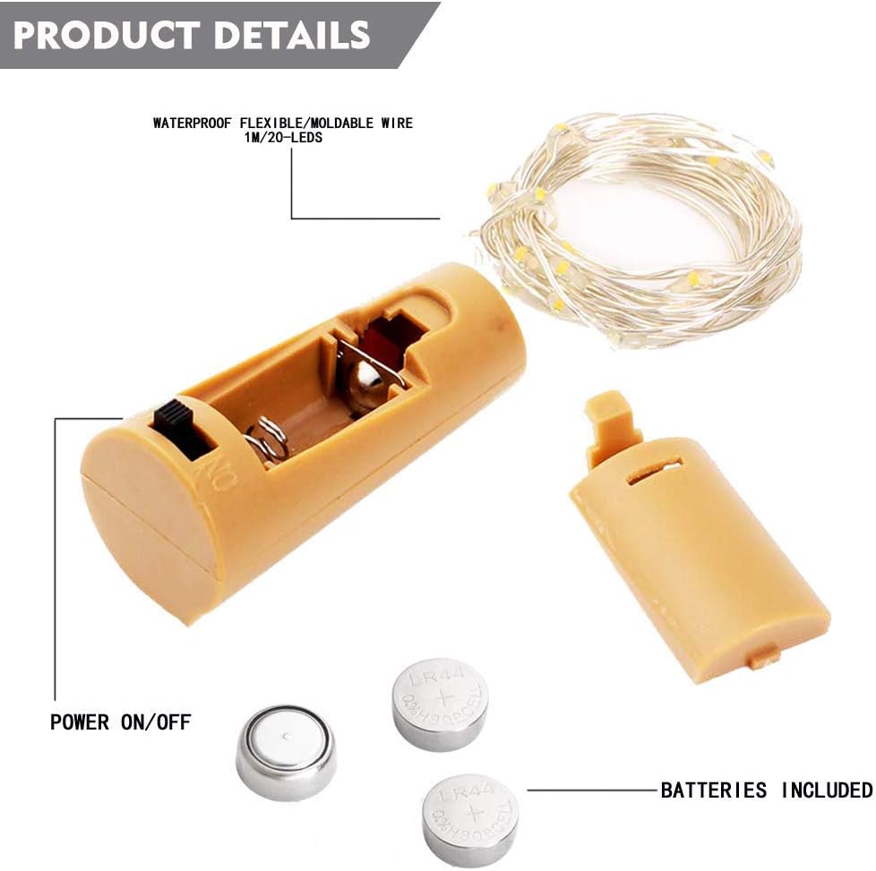 • UNIVERSAL CORK SHAPE :(cork diameter: 0.65 Inch to 0.9 Inch) fits most standard bottles, for table centerpieces decor in Halloween, birthday,weddings, parties, anniversary, Christmas, Thanksgiving Day. 360° sparkling for a beautiful effect. Perfect lightings for wine bottles. Also a good gift for your Kids, Friends and Families.