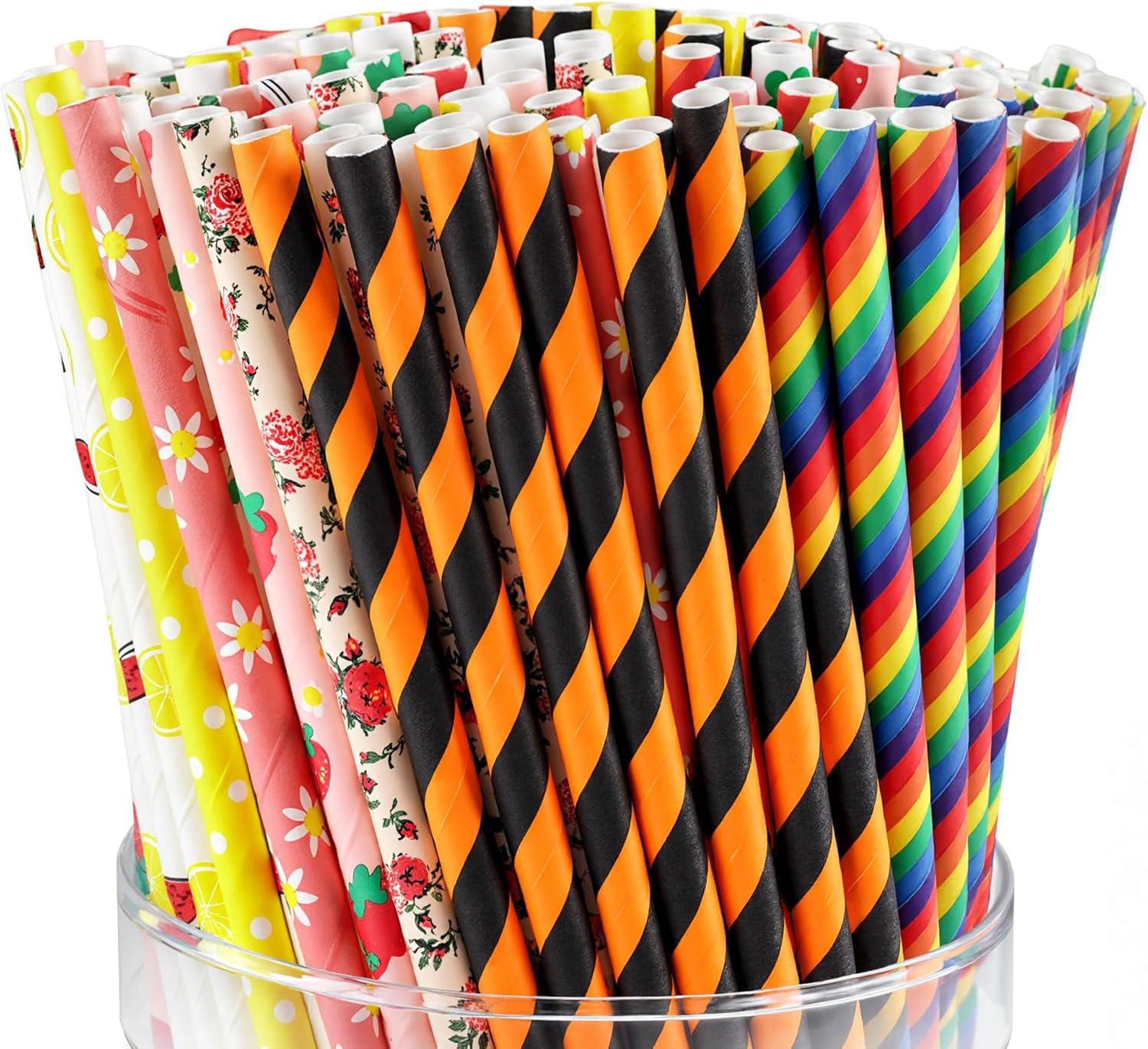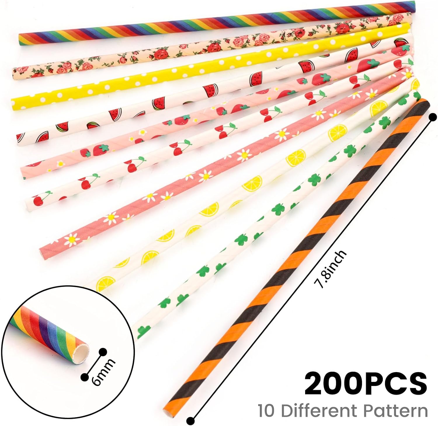HAKACC Paper Straws for Drinking, 200PCS Party Straws for Birthday Wedding and Holiday DIY Decorations, 10 Styles