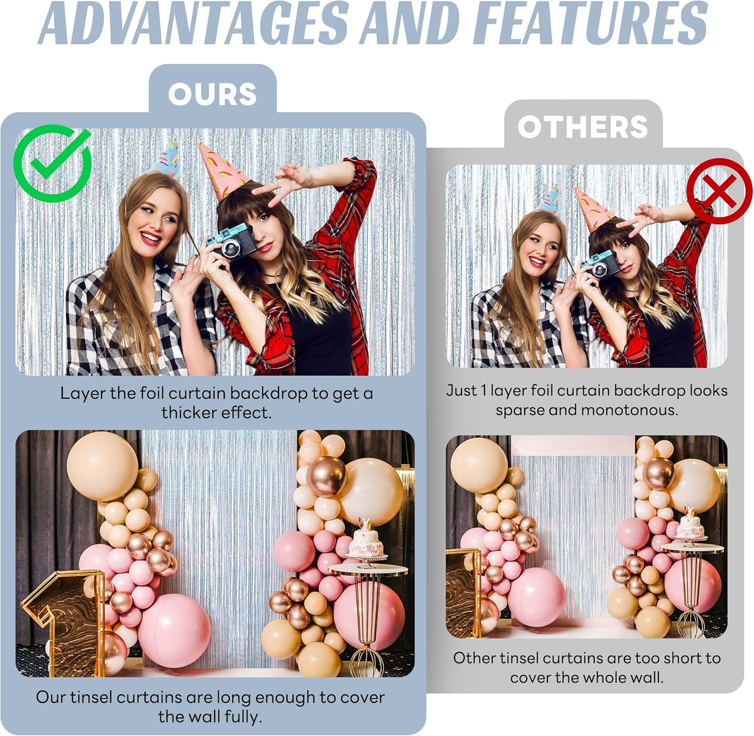 • Fantastic decoration:the beautiful tinsel backdrops are good for serving as party decorations, photography curtains, and so on; You will be surprised at the atmosphere and view they create