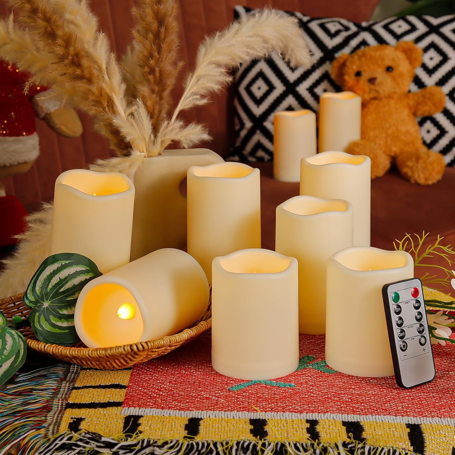 • Realistic Flameless LED Candles - This set of 9 large LED candles features a lifelike flickering effect, It looks like a real candle. Light up your fireplace with flameless candles and enjoy the warmth and romance of home