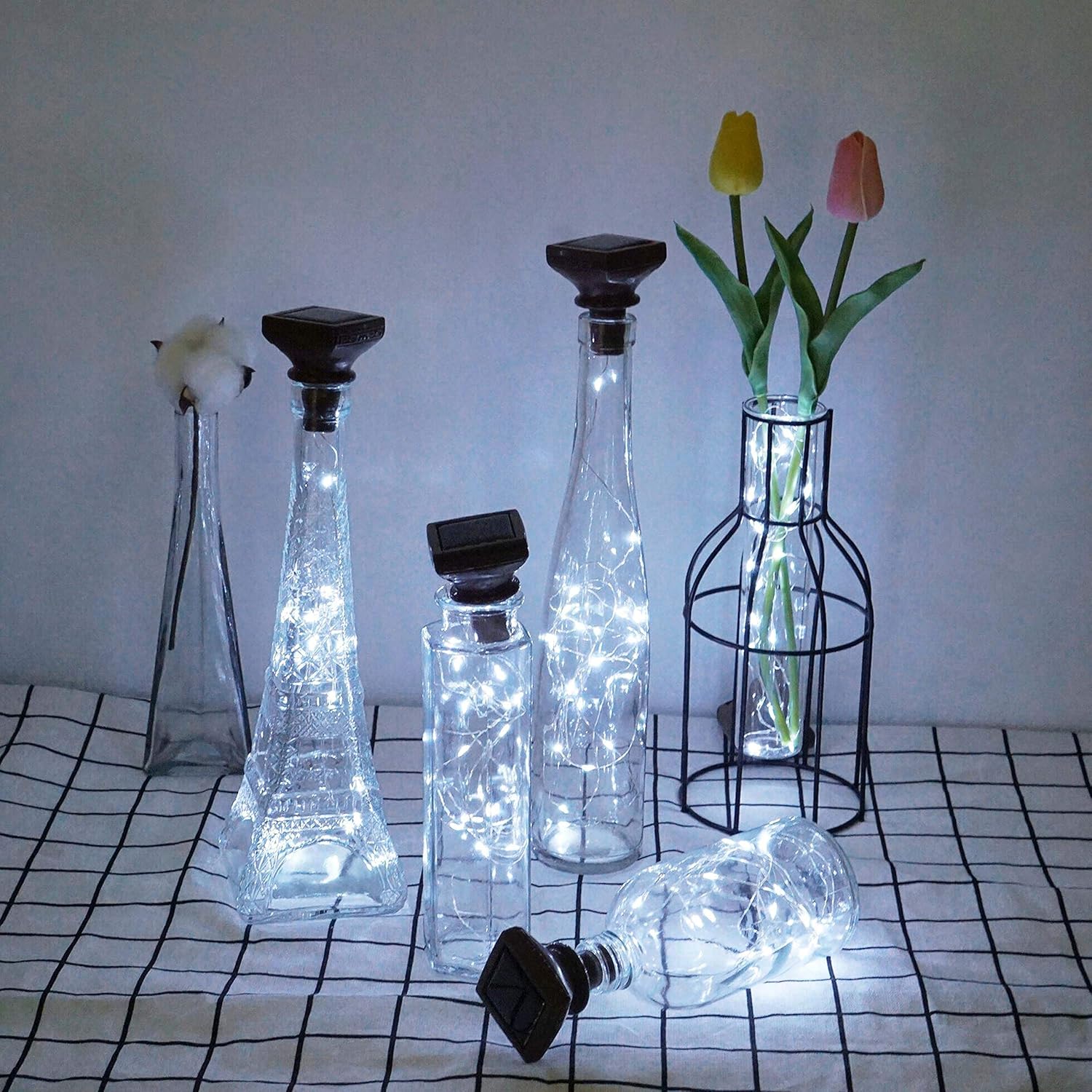 Decorman 10 Pack Solar Wine Bottle Lights 20 LEDs Waterproof Fairy Cork String Silver Wire Craft Lights for Party, Wedding, Christmas, Holiday, Garden, Patio or Table Decor