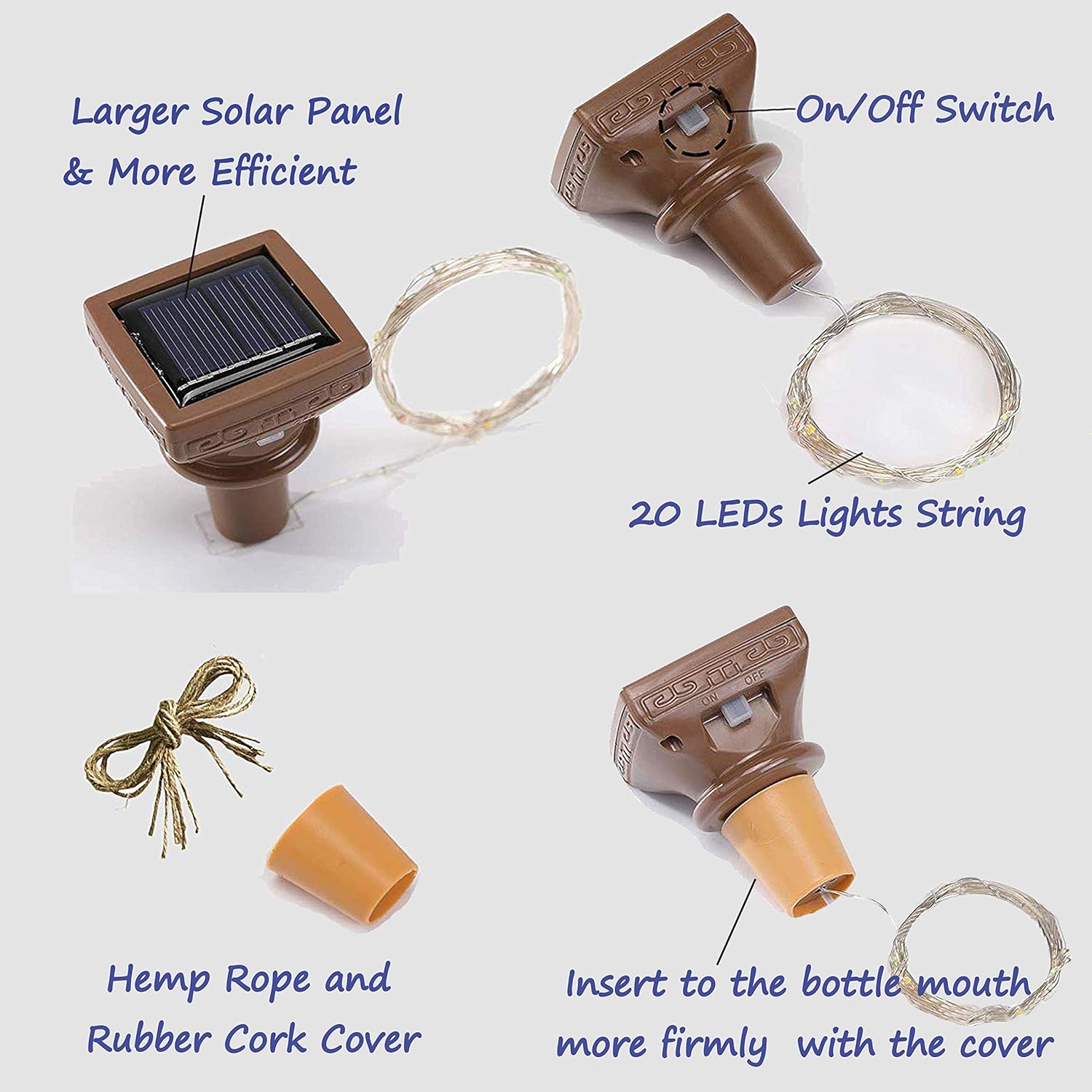 • Good Quality - Made of high-quality ultra silver copper wire. The Solar Square Bottle Cork Light is flexible, easy to bent and shaped, you can decorative empty bottle, Potted plants or anything as you like. And the wire lights are waterproof, so it will be absolutely safe if you want some water in the bottle (The corks are not waterproof)