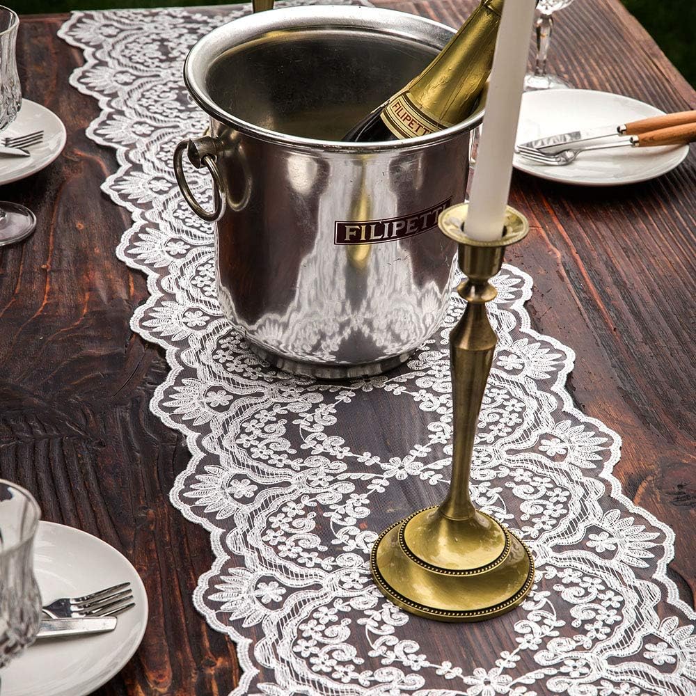 ARTABLE Rectangle Table Runner Lace Macrame Embroidered Table Runners with Exquisite Vintage Shabby Chic for Holiday Wedding Long Dinner Tables (White, 12 x 48 Inch)
