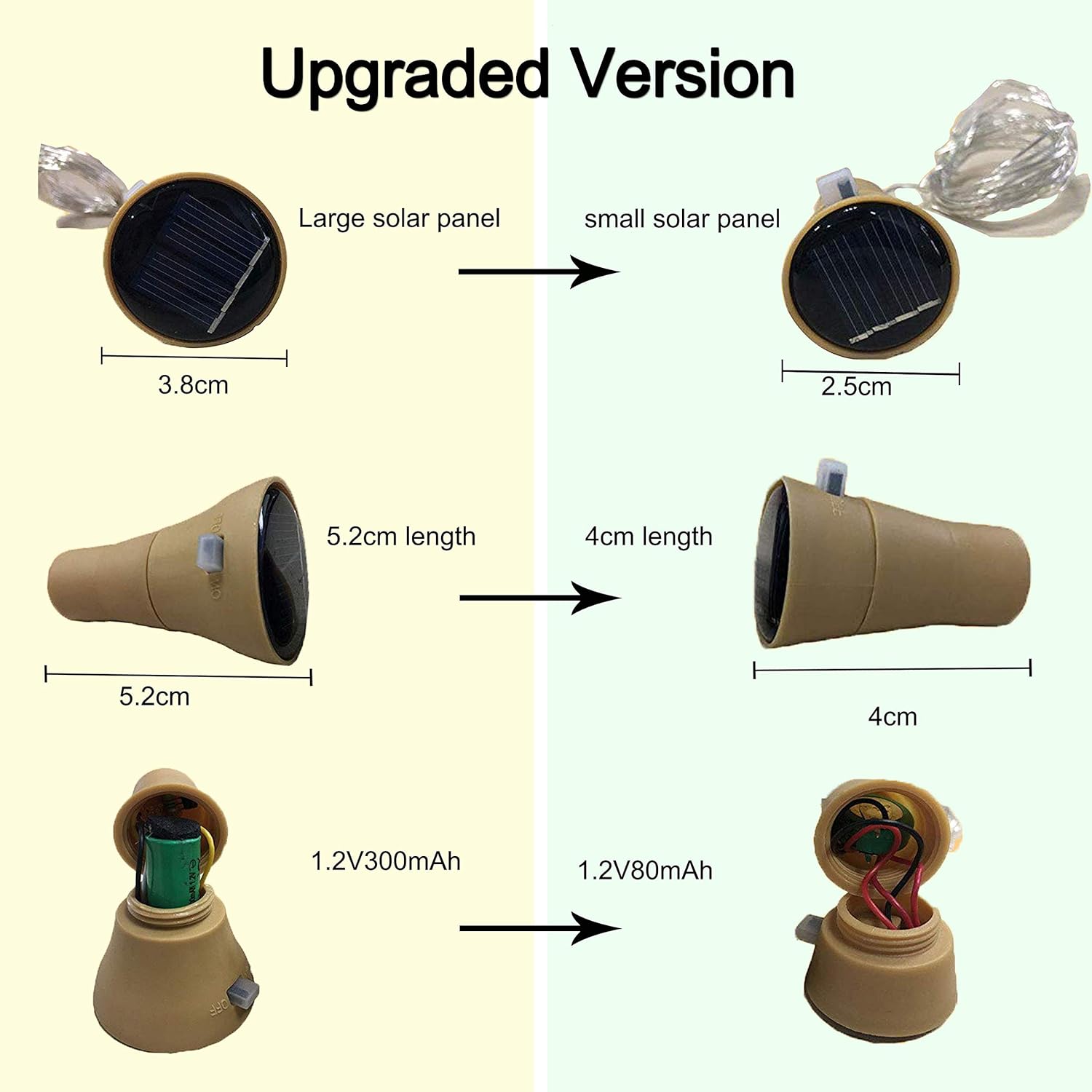 • Upgraded Cork Lights - Larger solar panel for efficient and rapid charging. 5.2cm total length, longer than other cork lights on the market, which means it suits more types of bottles. Using AAA 300mah rechargeable battery for a durable performance