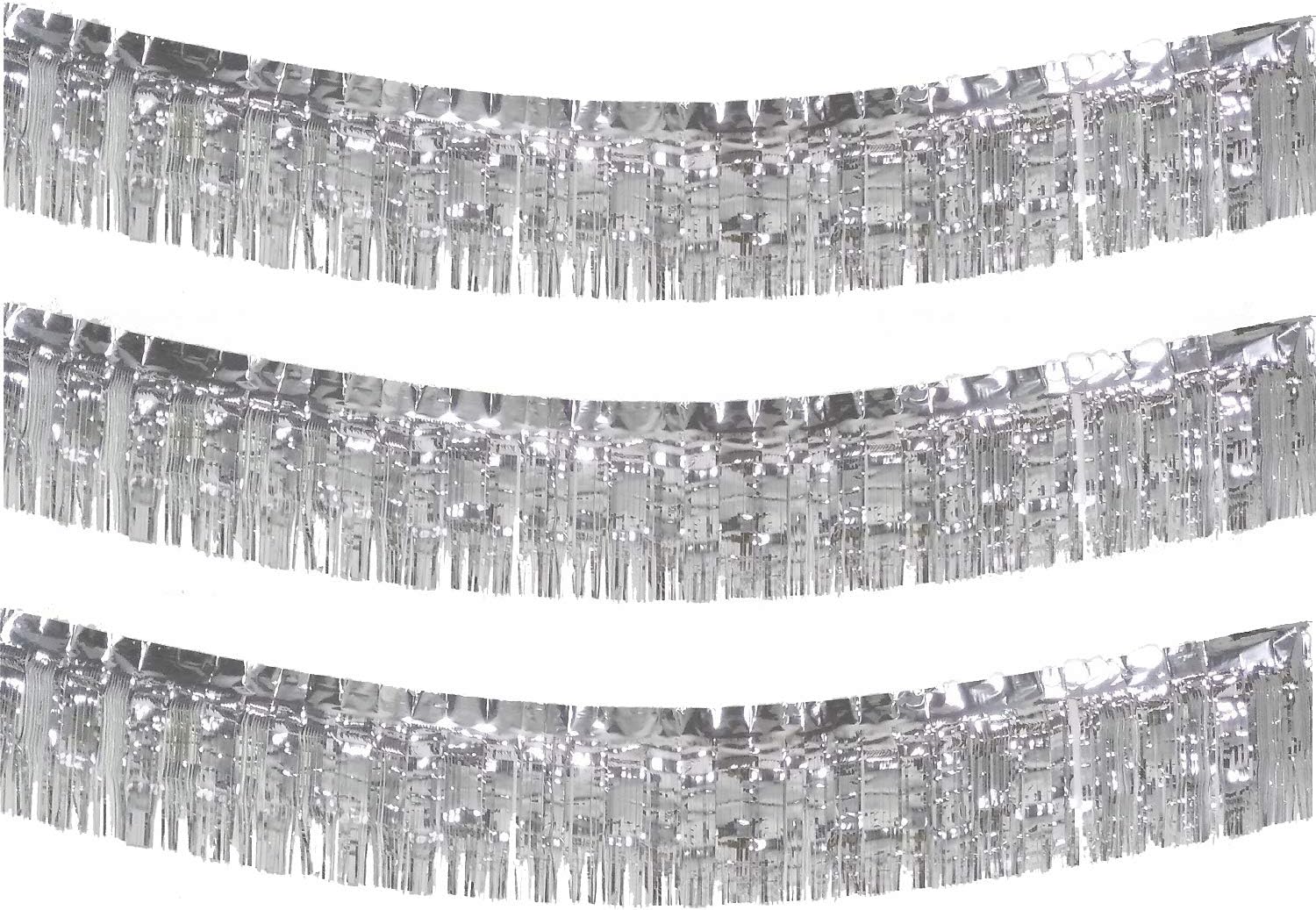 10 Feet Long Roll Foil Fringe Garland - Pack of 3 | Shiny Metallic Tassle Banner | Ideal for Parade Floats, Bridal Shower, Wedding, Birthday | Wall Hanging Fringe Garland Banner (Silver)