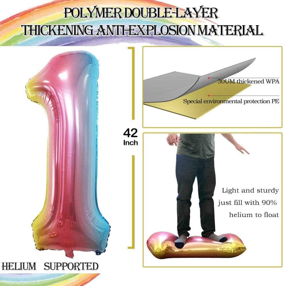 • Package Includes:Package Includes:Rainbow number 1 and number 6 foil balloon,1 inflatable straw,315 inch ribbon,NO HELIUM COME WITH THESE BALLOONS
