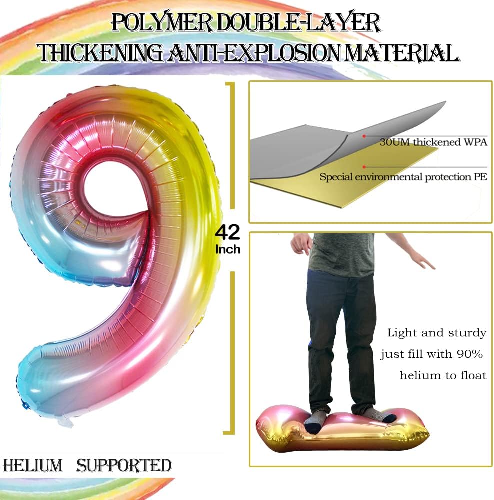 • Package Includes:Number 9 Balloons*3,42 inch,32 inch,16inch each,Straw*1