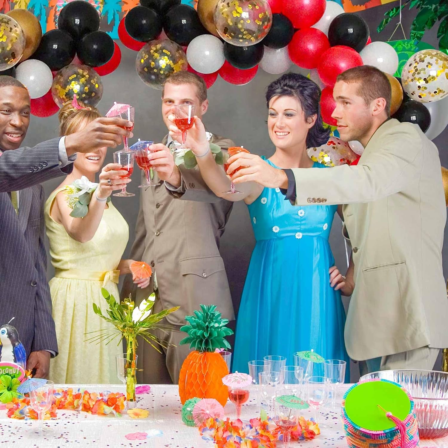 • Package Include - Latex Balloon Package (40pcs 12inch Latex balloons + 60pcs 10inch Latex balloons + 10 Gold Confetti Balloons + 1 roll of 16feet arch balloon strip tape + 1 balloon tying tools + 1 roll of 100 glue dots.).
