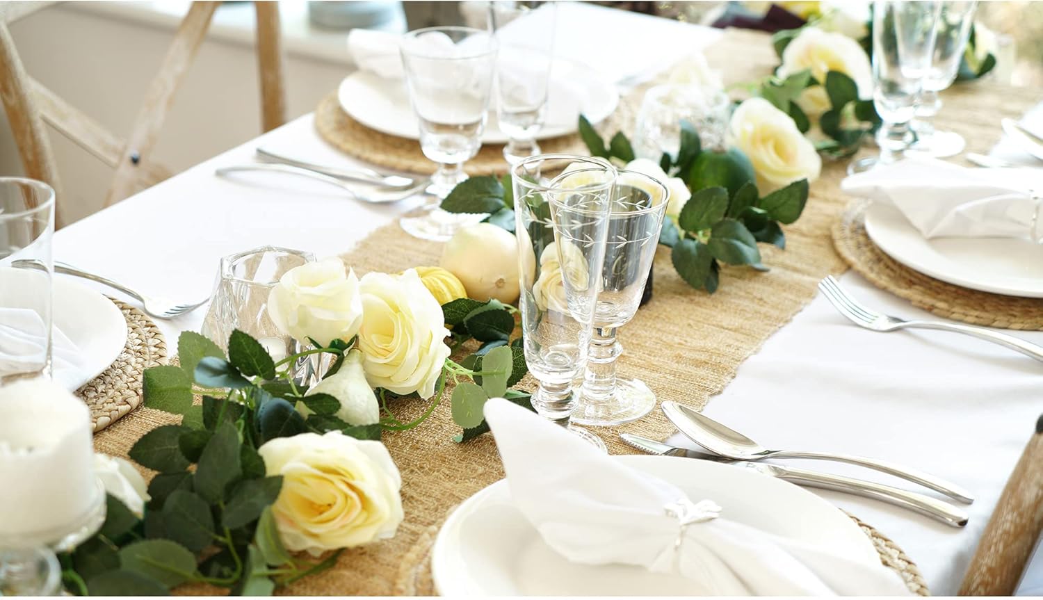 • What’s Inside: 4 artificial flower vines (cream white garlands). Sealed in FiveSeasonStuff branded packaging.