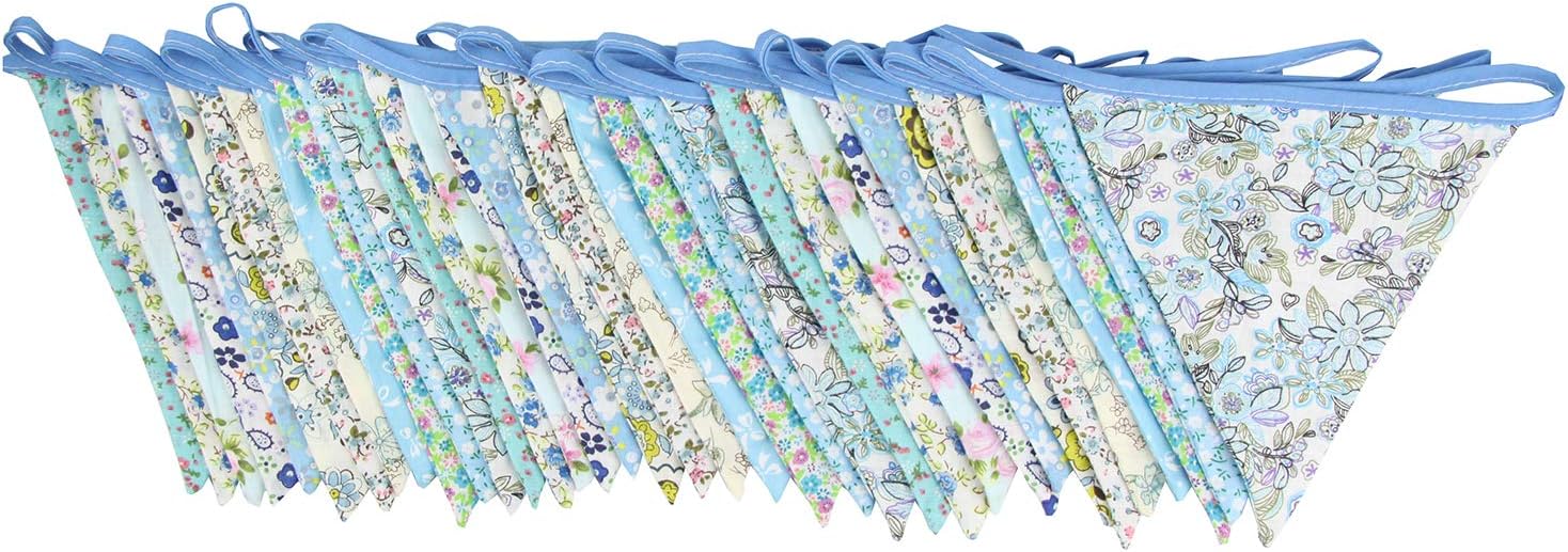 10M/32Ft Triangle Bunting Banner, 36 Pcs Cotton Fabric Flags Pennant Garlands for Birthday Party, Wedding, Baby Shower, Outdoor and Home Decorations (Blue)