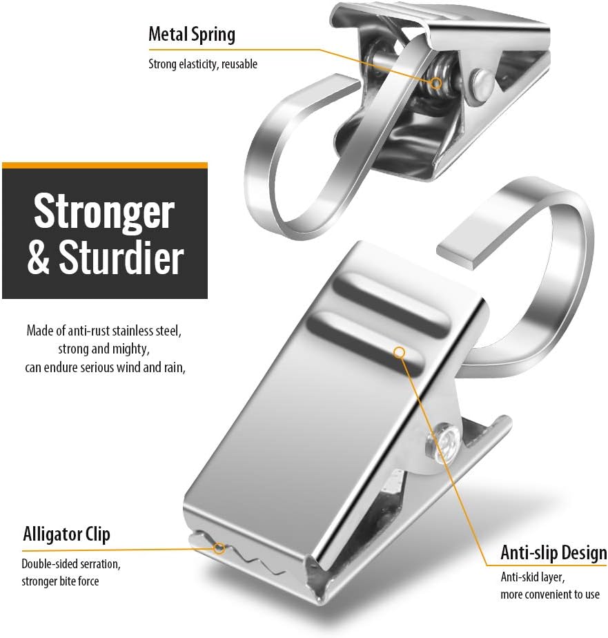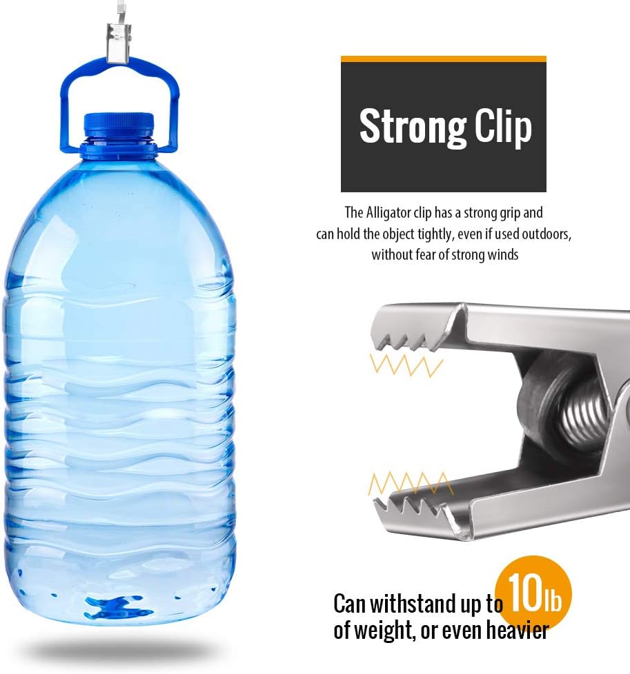 • Clip Hooks For Hanging: Efficient jaw clips for all your daily needs, with a strong grip and good hold. Fully enclosed flat-tooth clamps don't leave room for hanging objects to slip, can withstand serious winds and rain, hold up to 10 lbs and even more