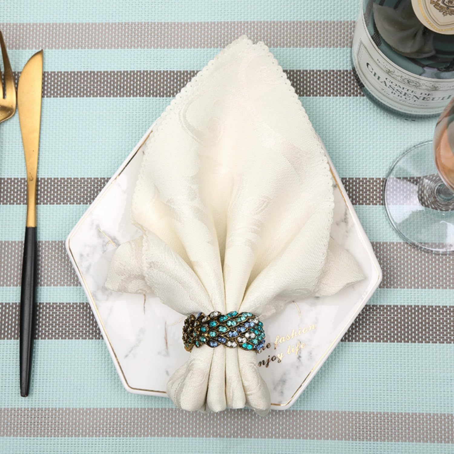 Jeweled Napkin Rings Set of 6 - Vintage Metal Crystal Rustic Peacock Napkin Ring Holders for Wedding Party Holiday, a Beautiful Dinner Table Décor (Multicolor)