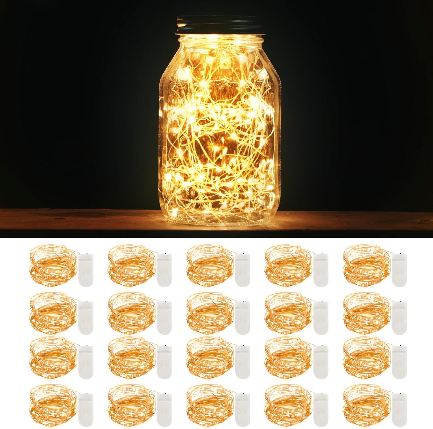 MUMUXI 20 Pack 3.3ft Fairy String Lights Battery Operated, Mini LEDs for Party Wedding Centerpiece Decorations, Crafts, Mason Jar Firefly Lights, Warm White