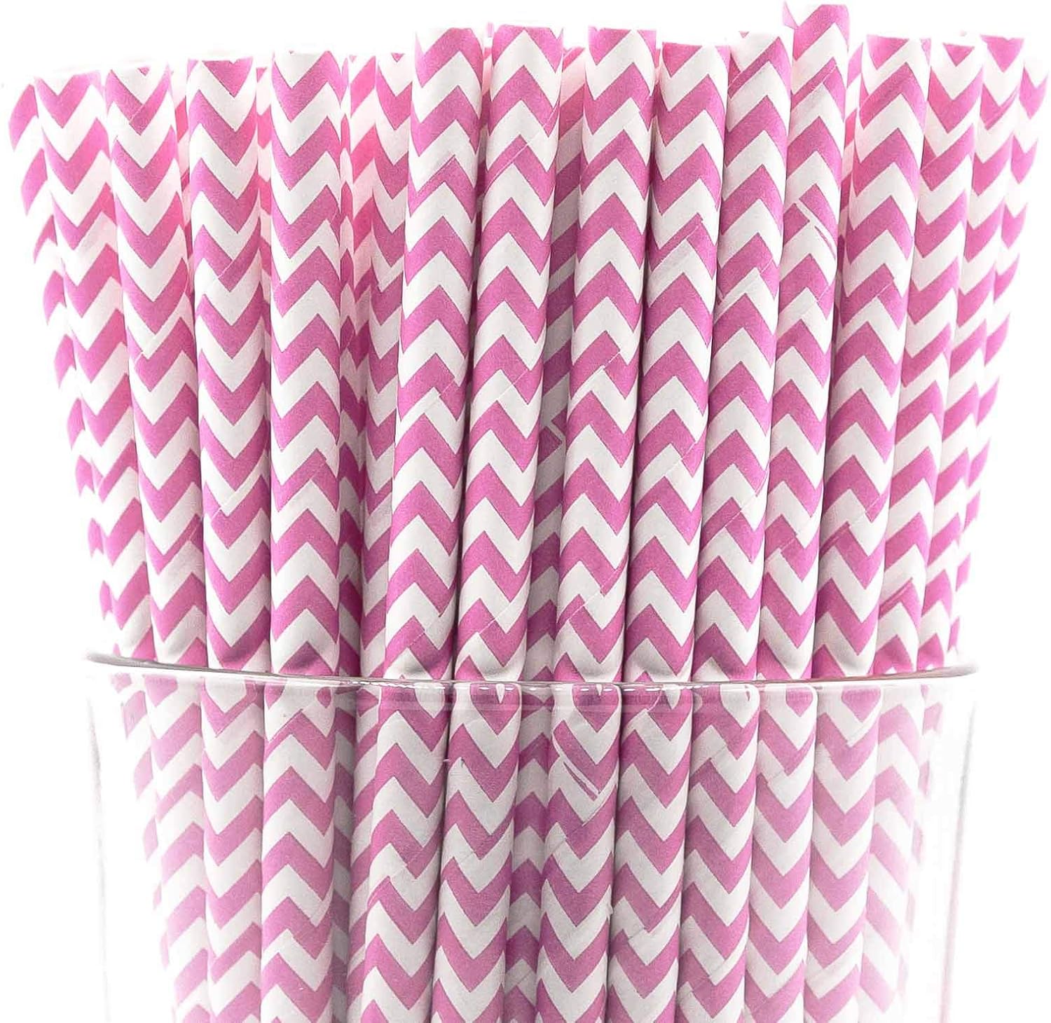 • Pack of 300 Baby Pink Chevron paper straws that are 7.75” long and have a diameter of 0.25”. Made with 4-ply paper which translates into thicker and more resilient straws that won’t wilt or change shape in both hot and cold drinks.