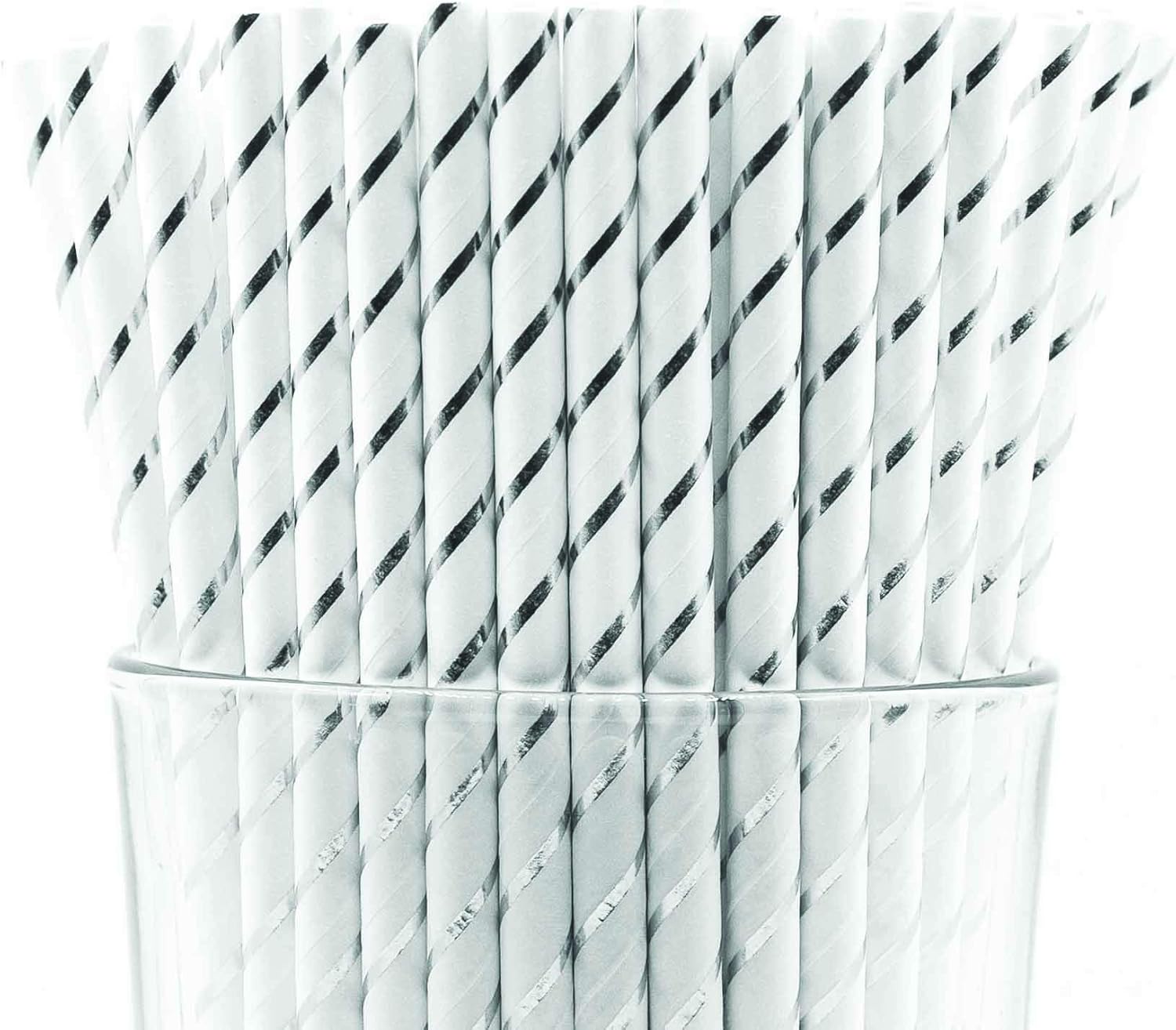 Pack of 300 Silver Foil Stripes Biodegradable 4-Ply Paper Drinking Straws (Compostable, Non-toxic, BPA-free)