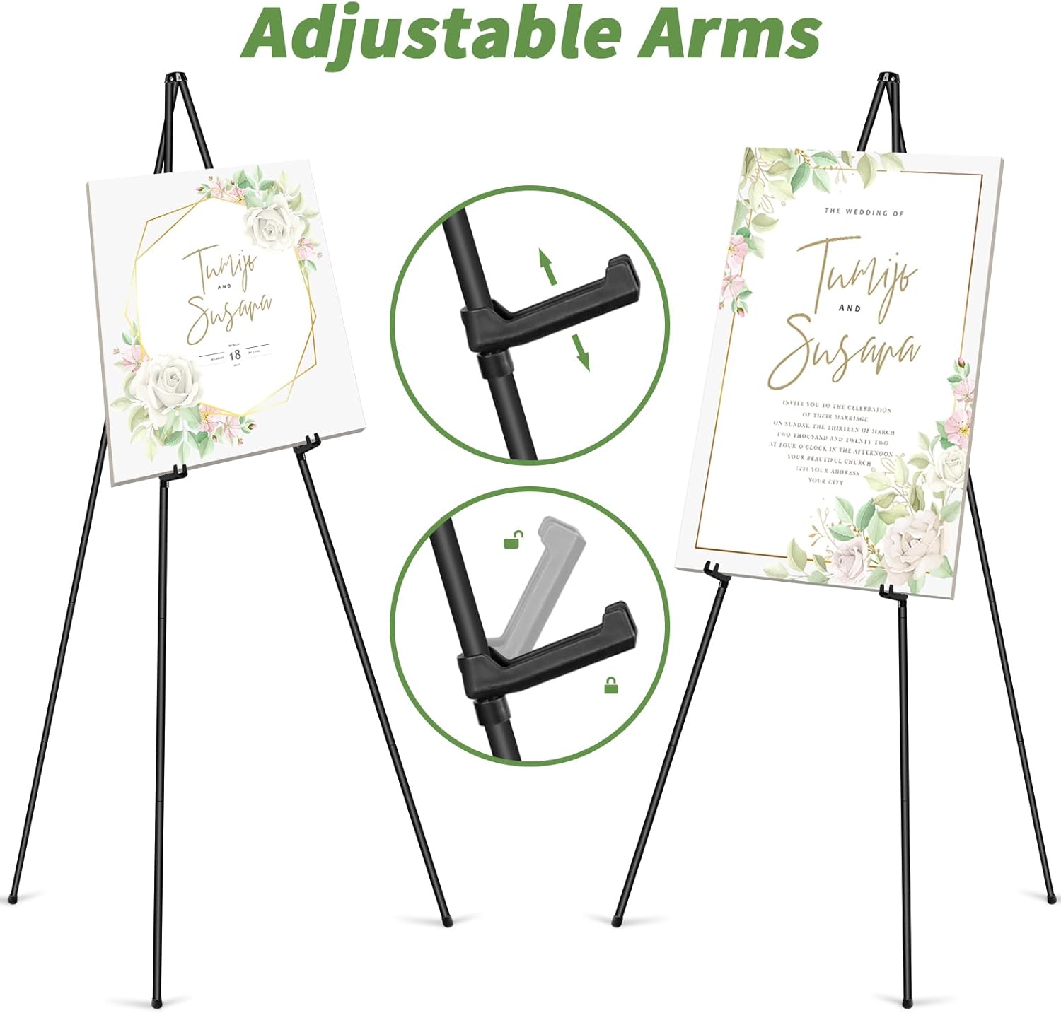 • FLOOR EASELS FOR DISPLAY - The poster board easel stand suit for displaying lightweight sign such as wedding signs,welcome signs,baby shower,event.It is good for display wooden sign, acrylic sign, foam board, dry erase whiteboard, poster boards,picture frame.