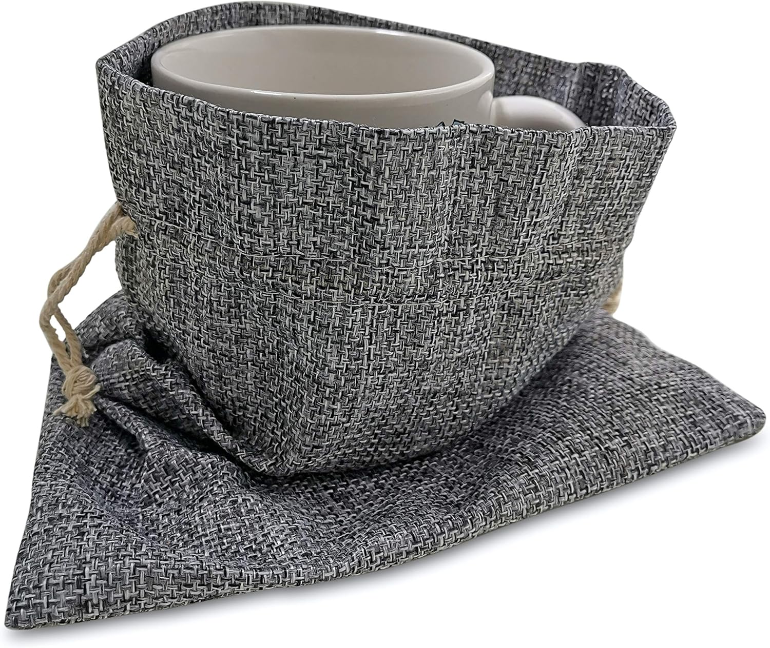 • Create a rustic look and feel with these gray burlap gift bags with jute drawstring.