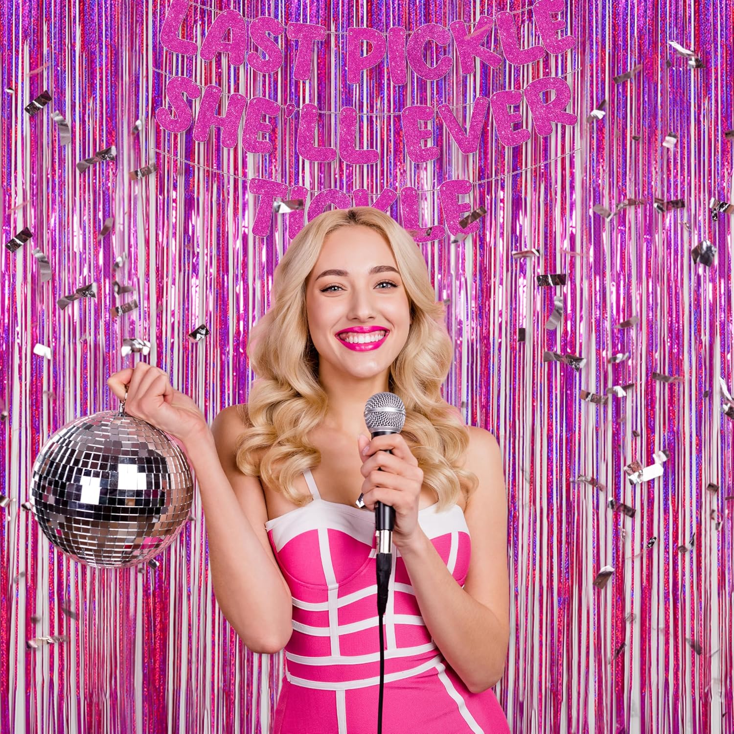 Melsan 2 Pack 3.2 ft x 8.2 ft Hot Pink Tinsel Foil Fringe Curtains Backdrop, Sparkle Foil Tinsel Curtains for Party Picture Area Decoration, Rose Red