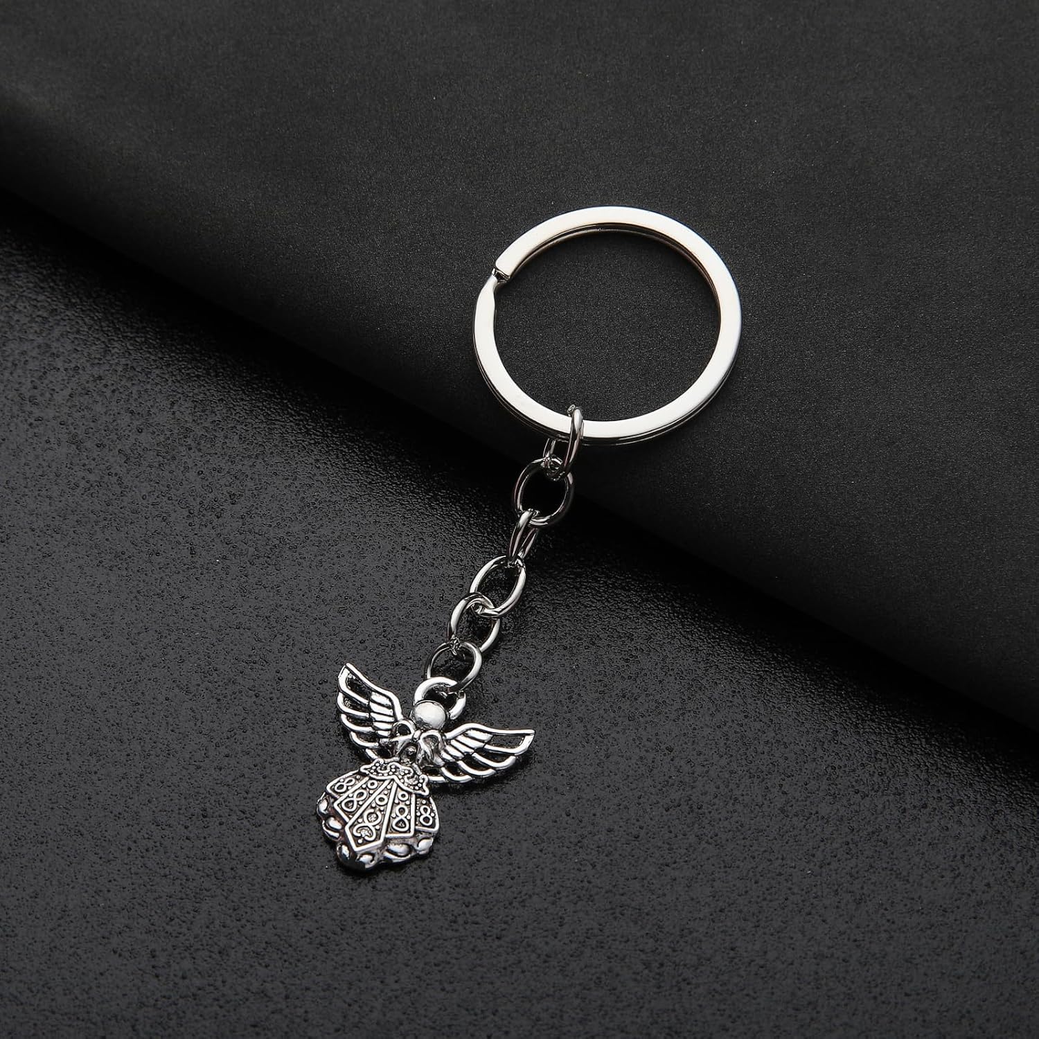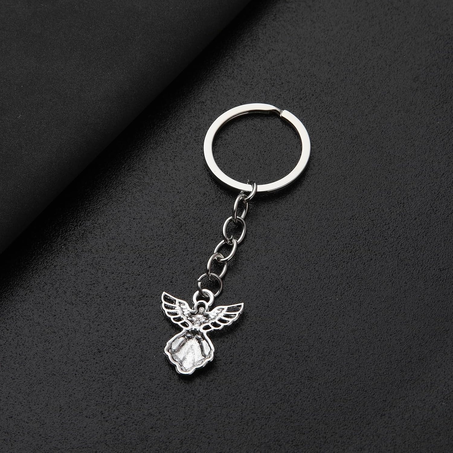 PHAETON 50PCS Silver Tone Guardian Angel Charm Keychain Key Ring