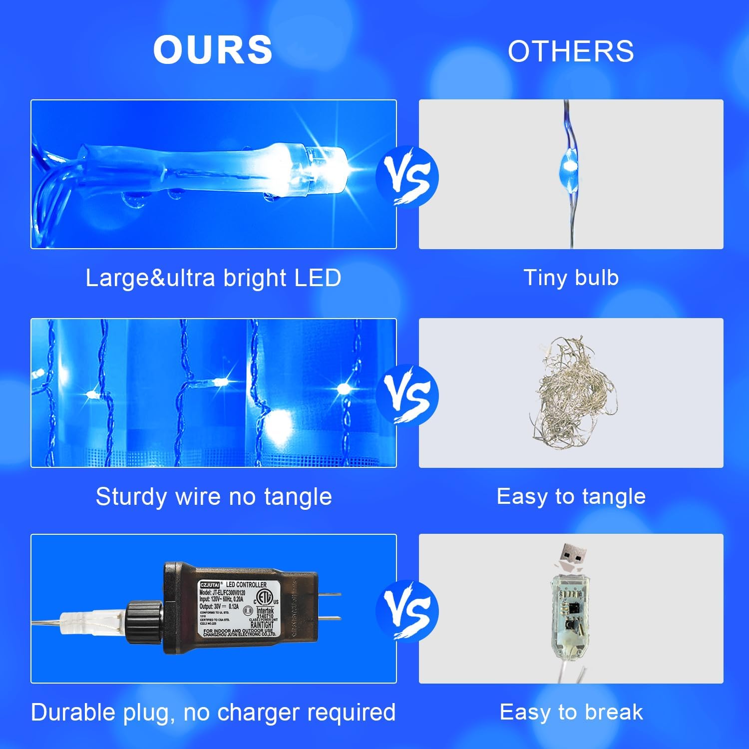 • Great Decorations for Indoor-outdoor: Our blue Christmas curtain lights are outdoor waterproof (IP44), withstand rain and snow, and are ideal for outdoor use. It can be used for outdoor decor, such as gazebos, fences, lawns, and party backdrops. These backdrop curtain lights are what you are looking for, it is so mesmerizing! Note: the plug is NOT waterproof, please put it in a dry place.