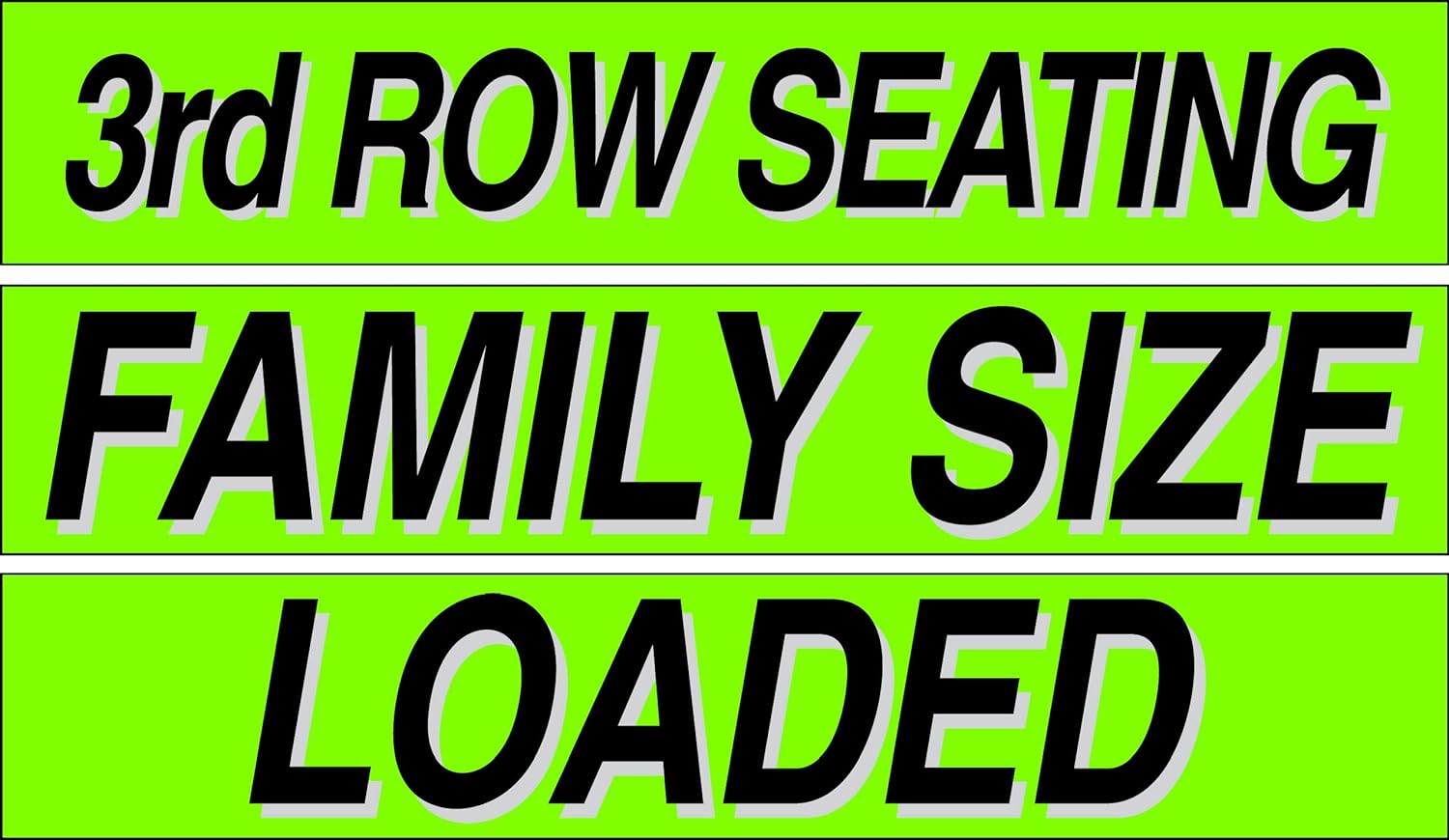 • 3rd Row Seating, Family Size, Loaded Stickers💥 1 Dozen Each, Car Lot Pro Pack 15" Slogans