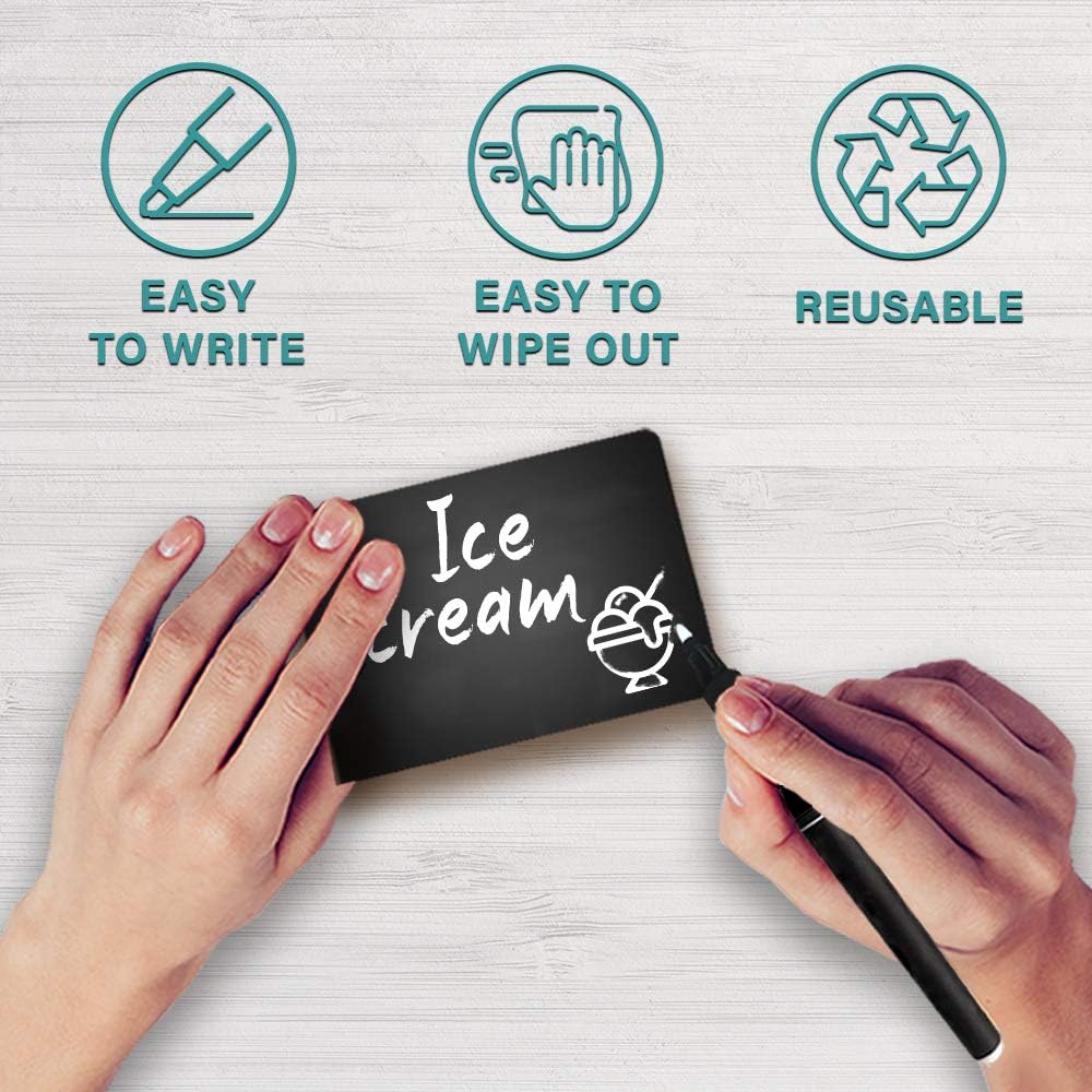 • πŸ”Ή Made from Food-Safe Italian Plastic: Crafted from matte Italian plastic, each sign offers a smooth surface for chalk markers β€” ideal for use as chalk name tags, buffet food labels, or mini name plates.