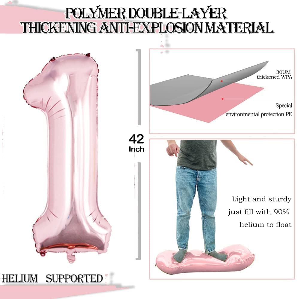 GOER Rose Gold Foil Balloons Number 1,Huge Number Balloons for 1st 11st Birthday Party Supplies Anniversary Decorations(3 pcs,42 inch,32 inc,16inch)