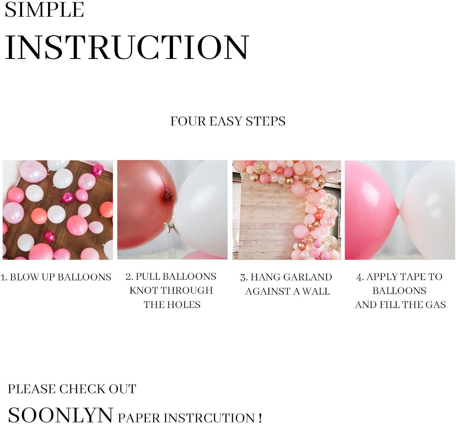 • 30% Thicken Balloon Arch Kit: 4 pcs balloon acessories. Soonlyn rose gold balloons garland are pink,baby pink,pearl rose gold,white,gold chrome,glitter balloons