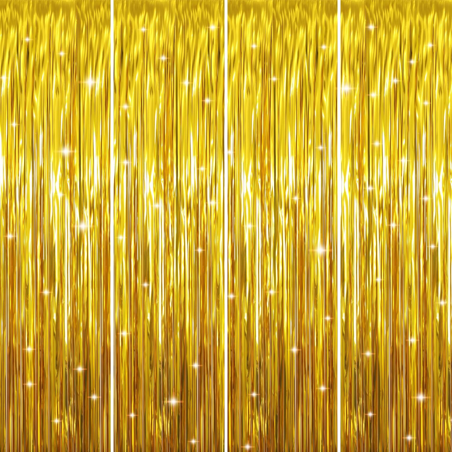 • Package Includes:4 pack gold foil fringe curtain,3.2 ft x9.8 ft each,suitable for hanging on a door or coverage a wall fully
