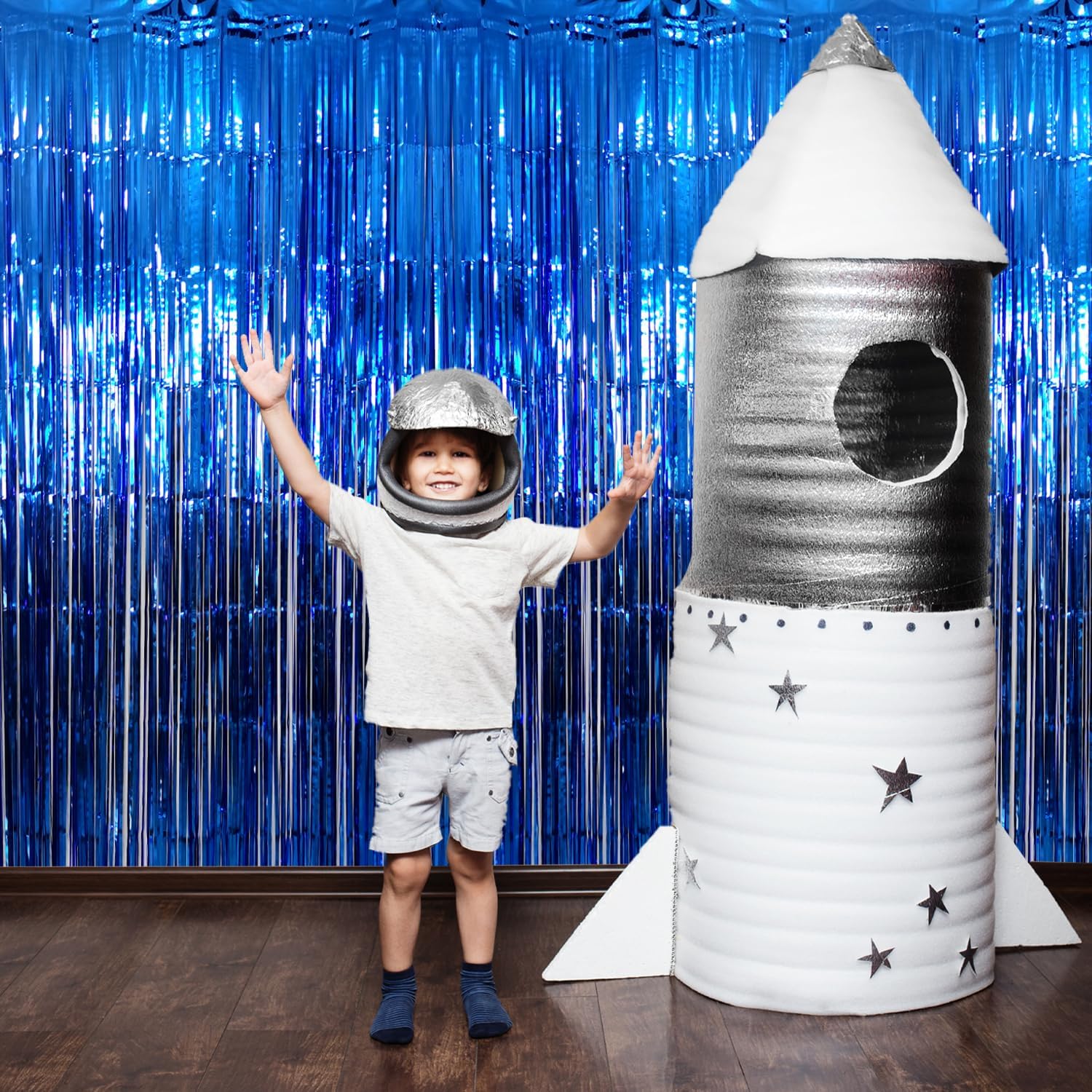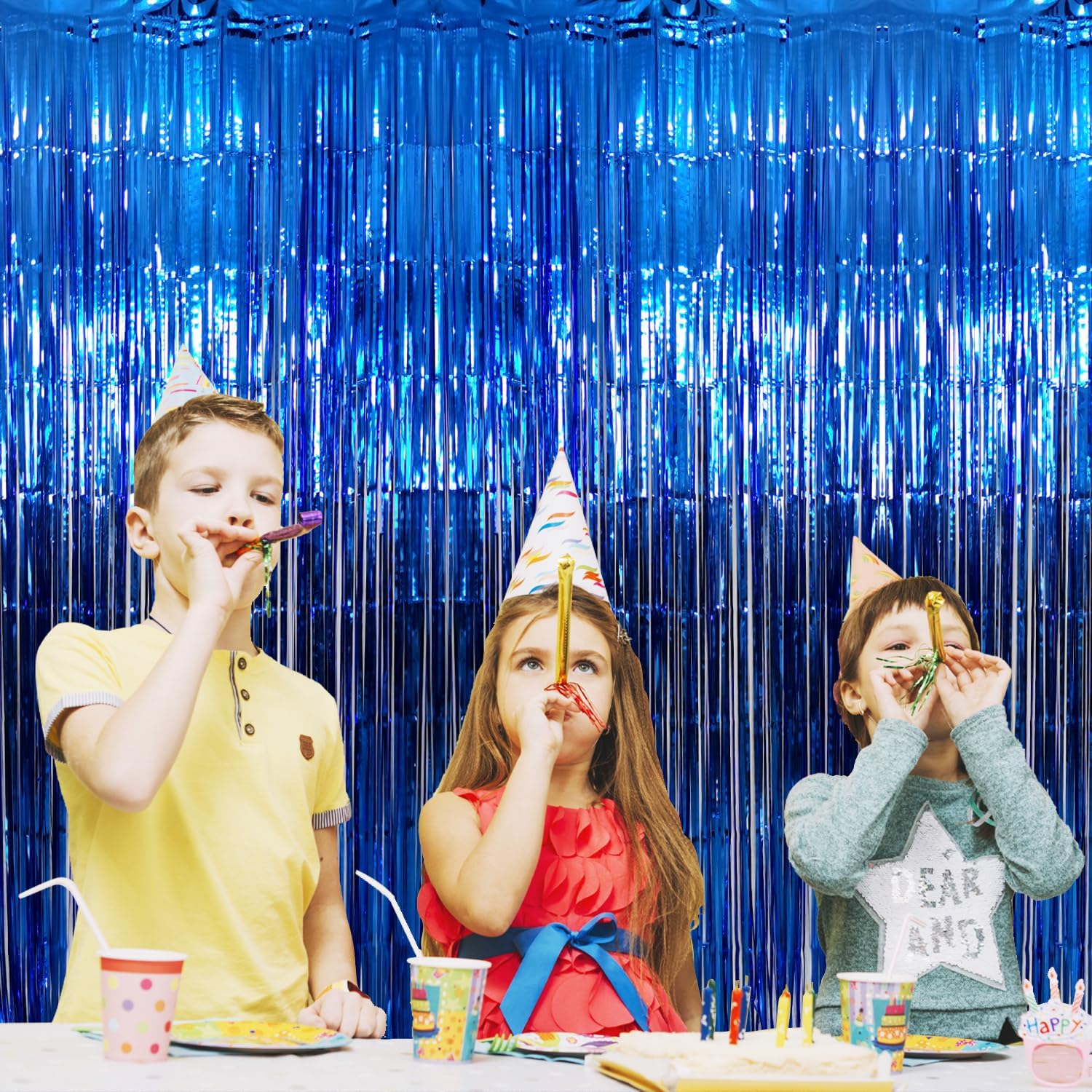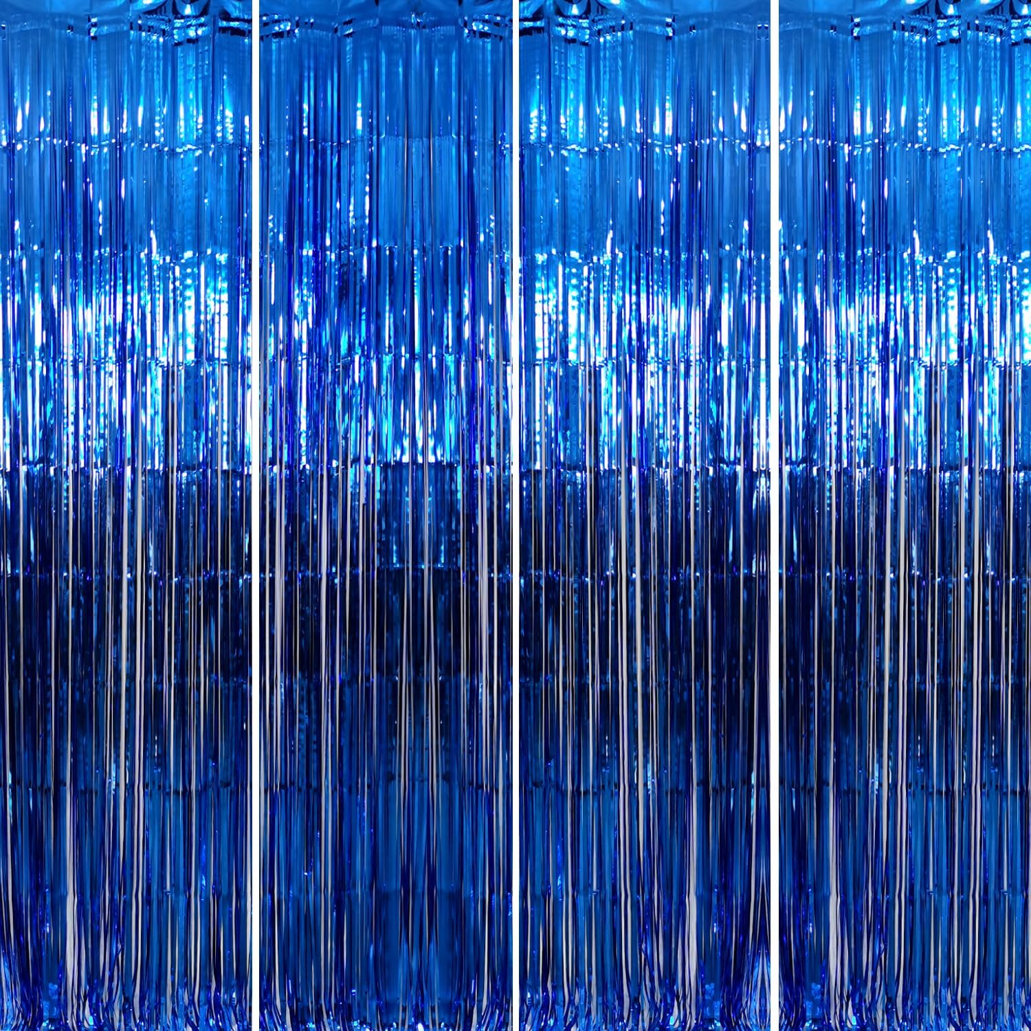• Package Includes:4 pack navy blue foil fringe curtain,3.2 ft x9.8 ft each,suitable for hanging on a door or coverage a wall fully