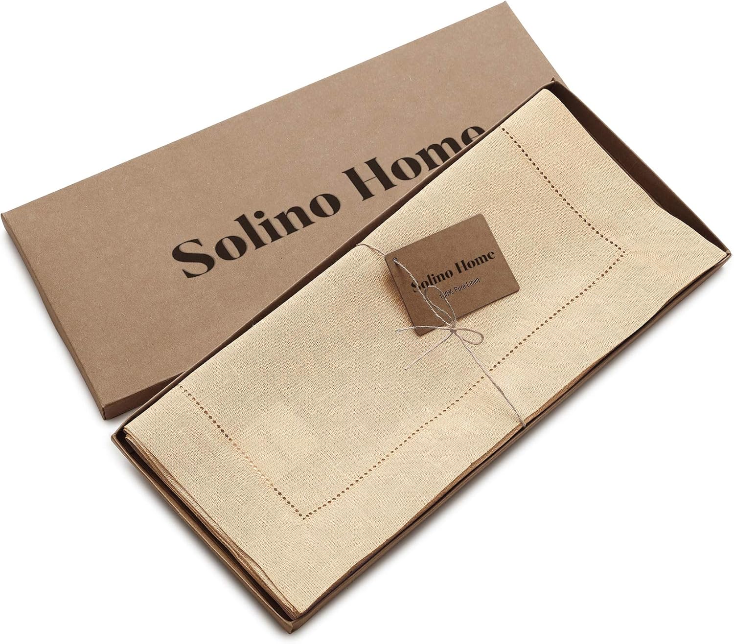 Solino Home Linen Table Runner 36 Inches - 100% Pure Linen Beige Hemstitch Table Runner 14 x 36 Inch Ideal for Dresser and Coffee Tables - Fall, Autumn, Thanksgiving, Christmas - Classic Hemstitch