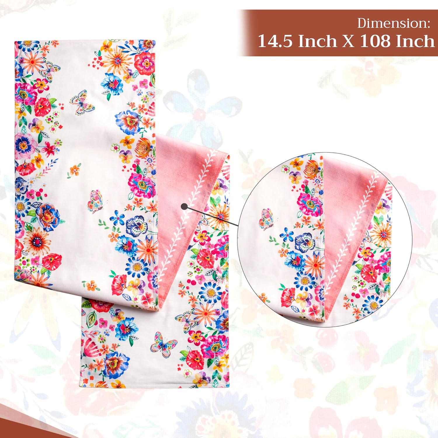 Maison d' Hermine Table Runner 100% Cotton Double Layer Table Runners 108 inches Long Decorative for Home Dining Party Wedding Bridal Shower Spring Summer (Happy Florals - High Summer, 14.50" x 108")