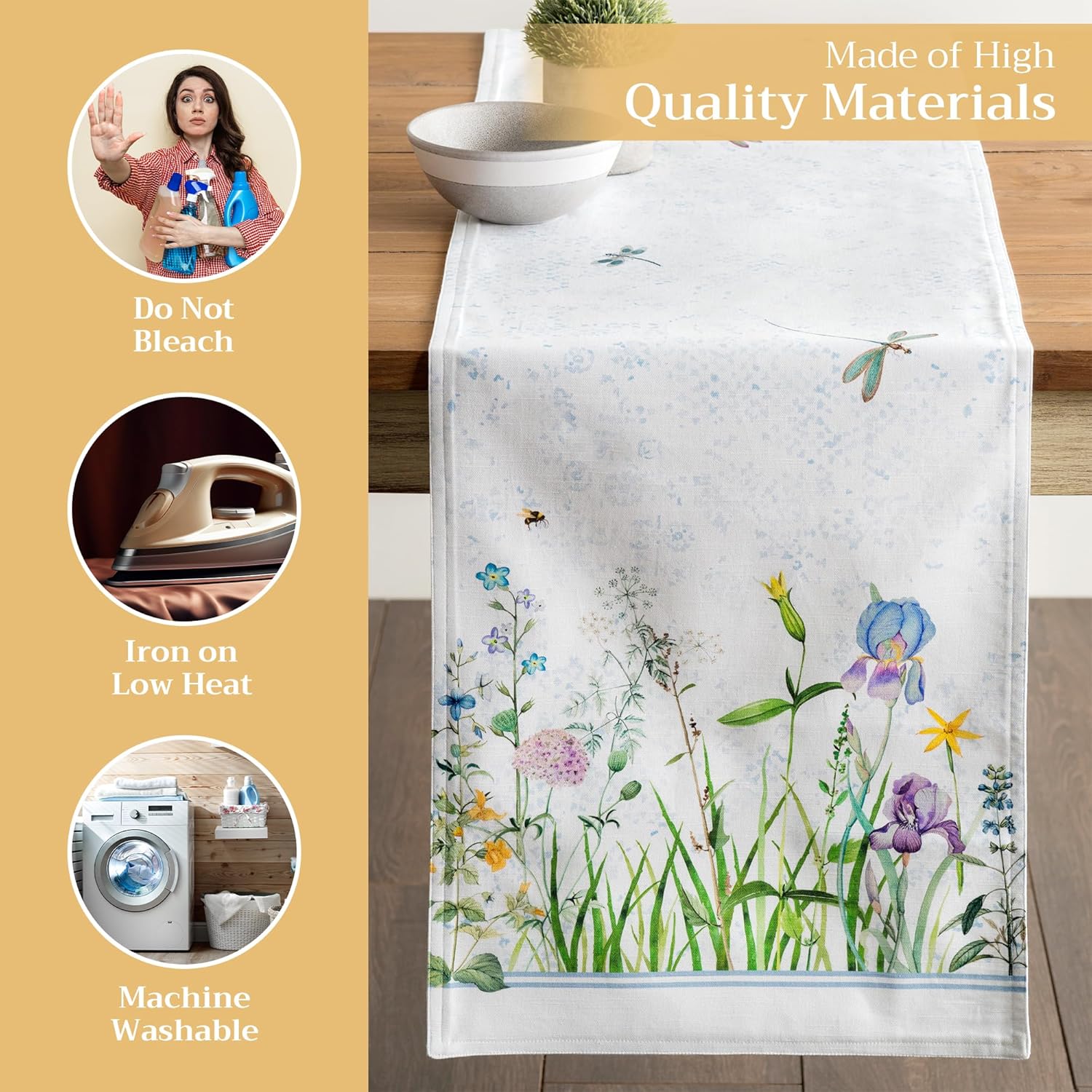 Maison d' Hermine Table Runner 100% Cotton Double Layer Table Runners 72 inches Long Decorative for Home Kitchen Dining Party Wedding Bridal Shower Spring Summer (Fleurs De Mai, 14.50" x 72")