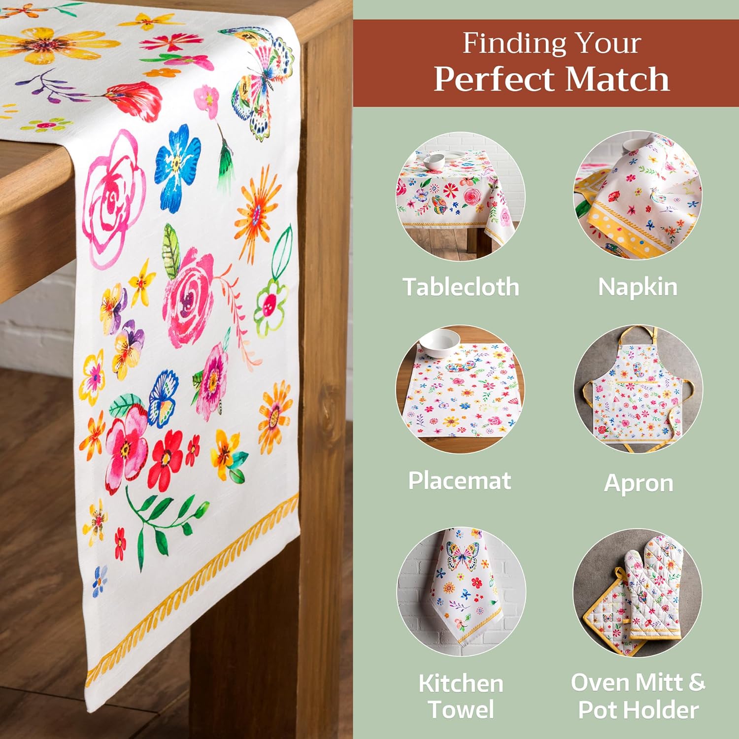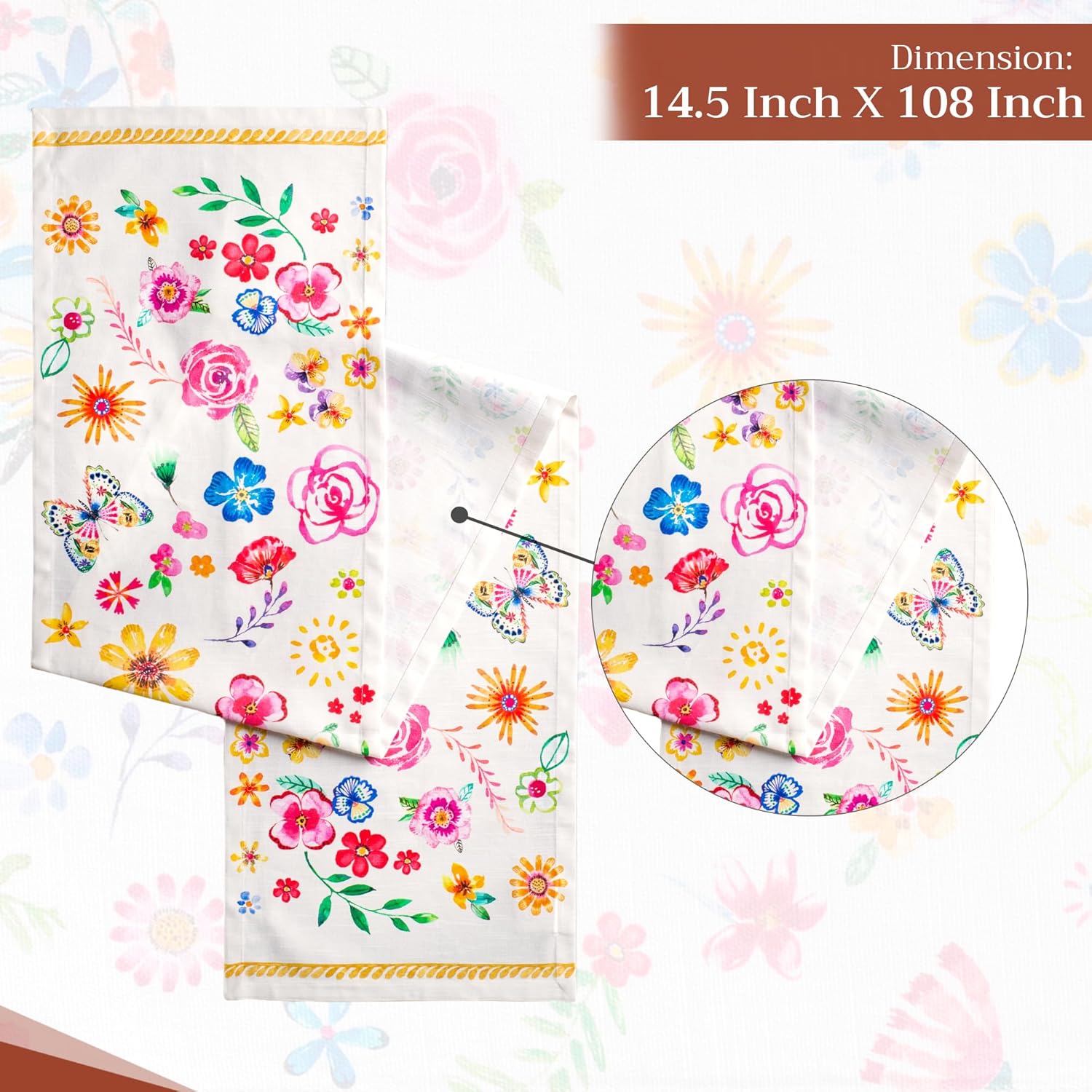 Maison d' Hermine Table Runner 100% Cotton Single Layer Table Runners 108 inches Long Decorative for Home Dining Party Wedding Bridal Shower Spring Summer (Happy Florals - Sweety, 14.50" x 108")