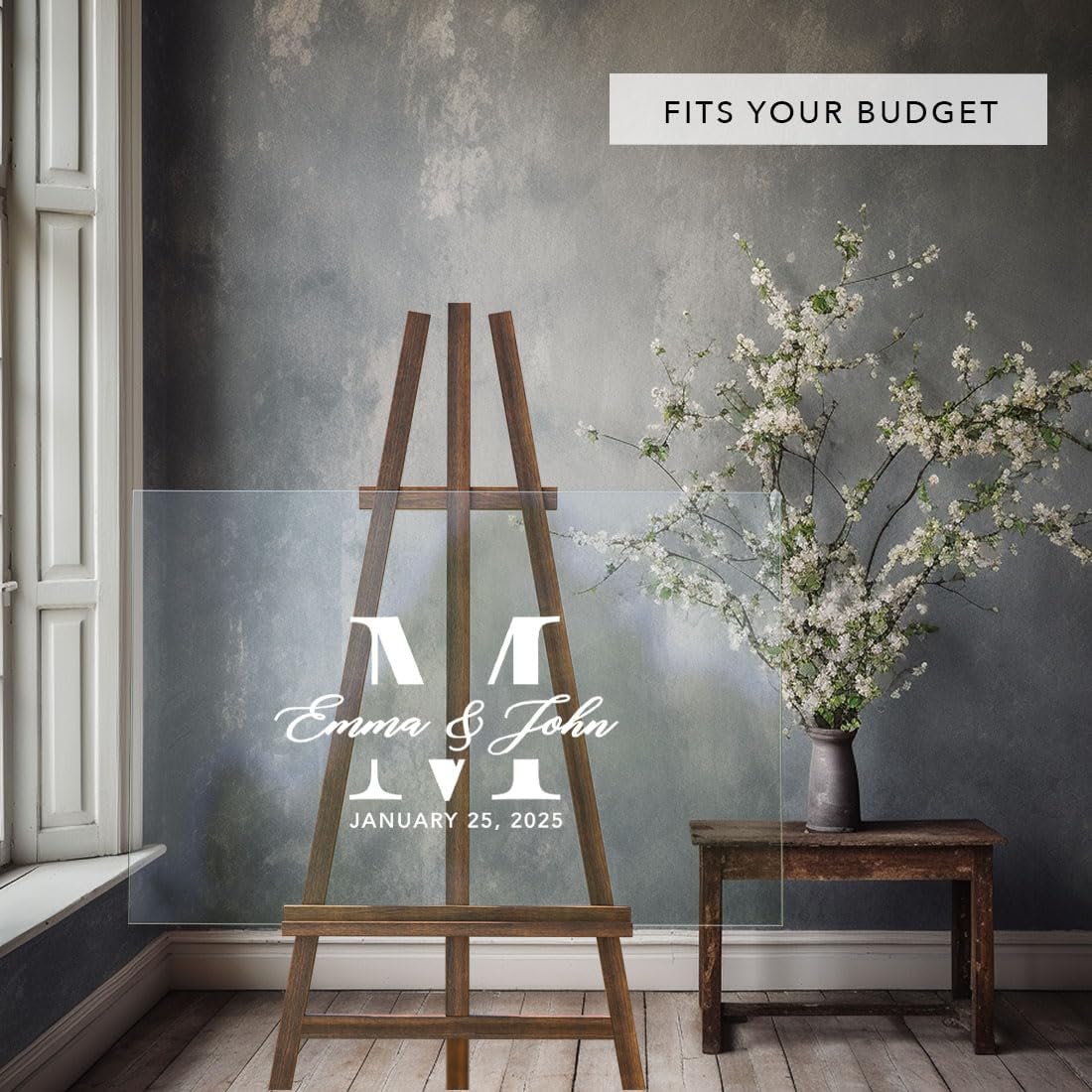 Andaz Press Custom Large Wedding Acrylic Sign, 16 X 24 Inches, Minimalist Modern Monogram, Personalized Sign, Welcome Sign For Modern Wedding Theme Wedding Signs For Ceremony And Reception